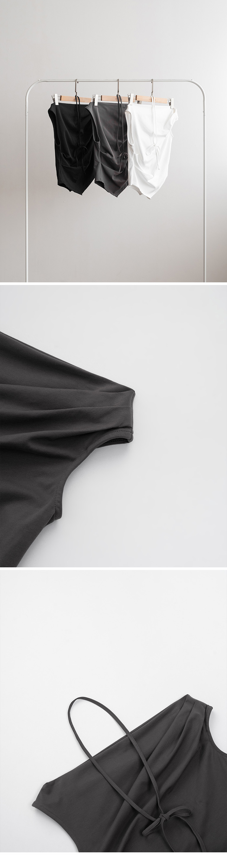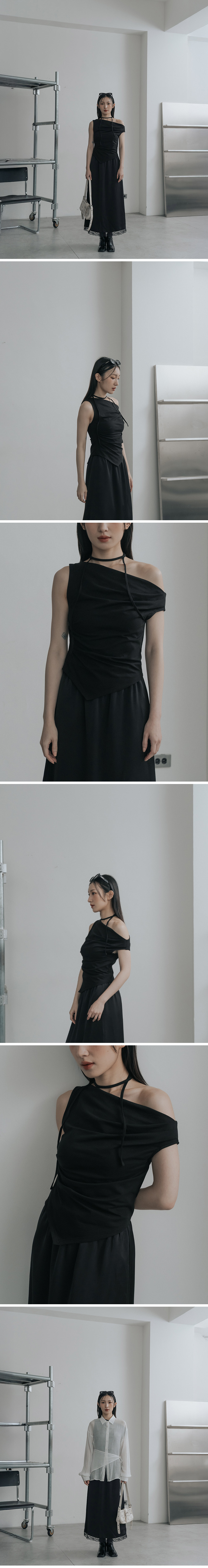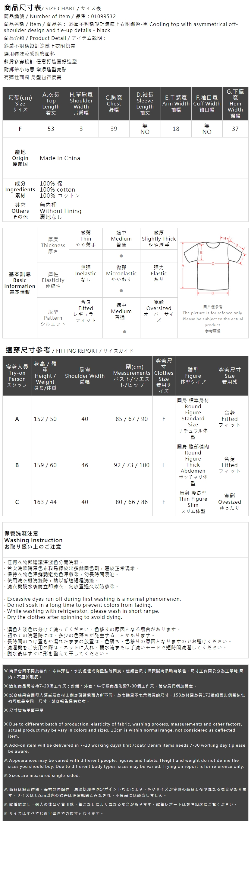 Cooling top with asymmetrical off-shoulder design and tie-up details - black【01099532】in stock+pre-order