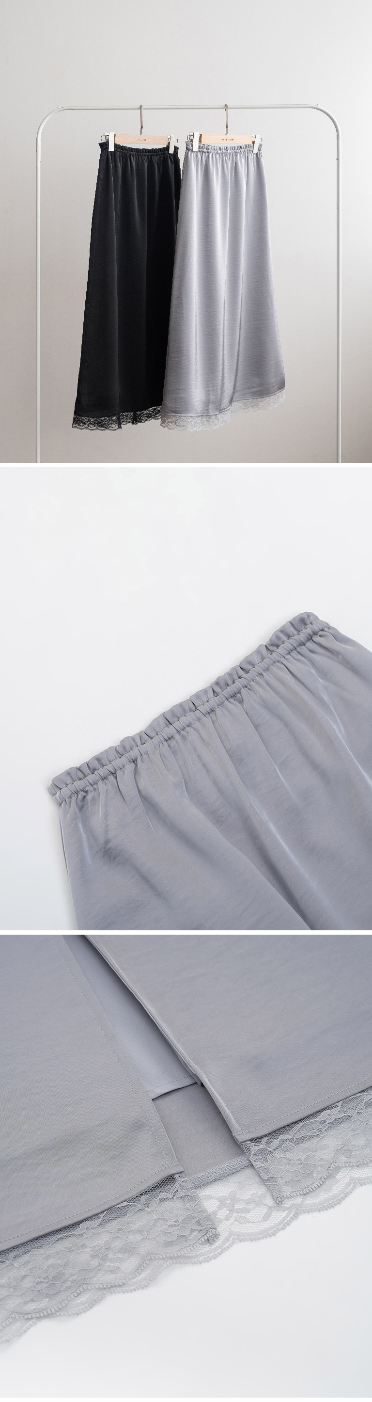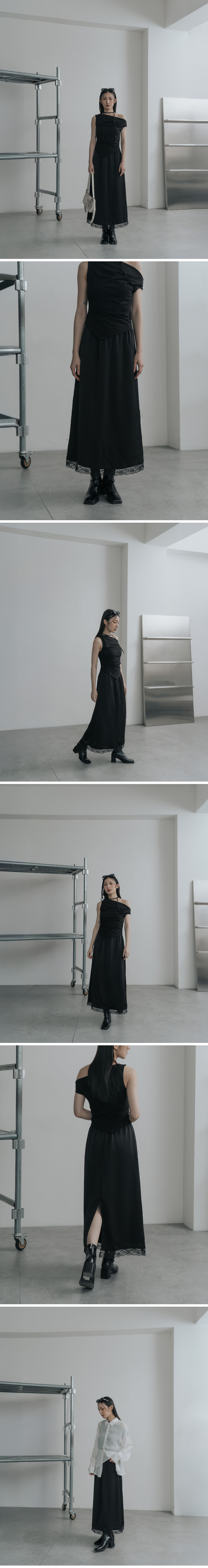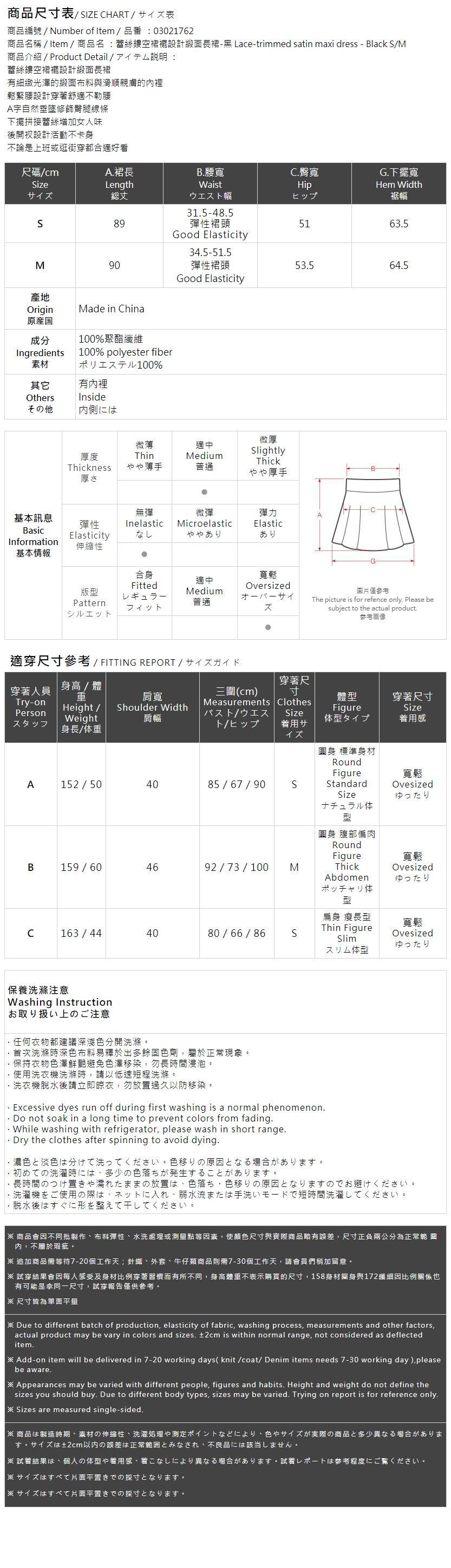 Lace-trimmed satin maxi dress - Black S/M【03021762】in stock+pre-order