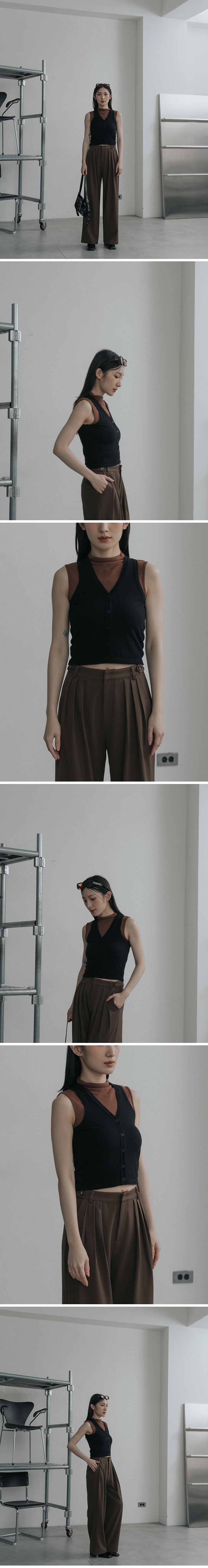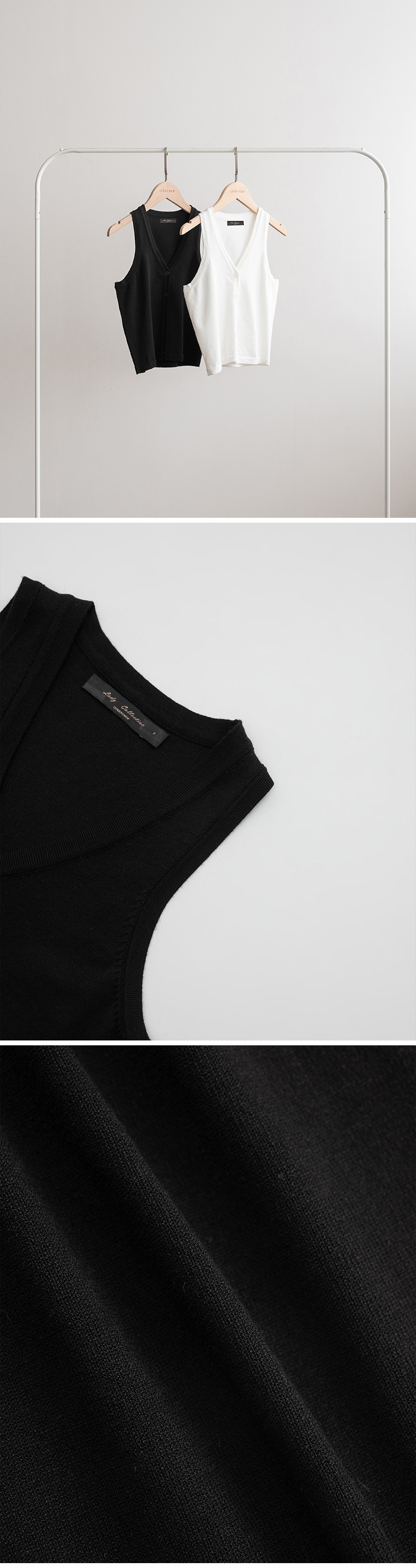 质感开襟V领削肩针织背心