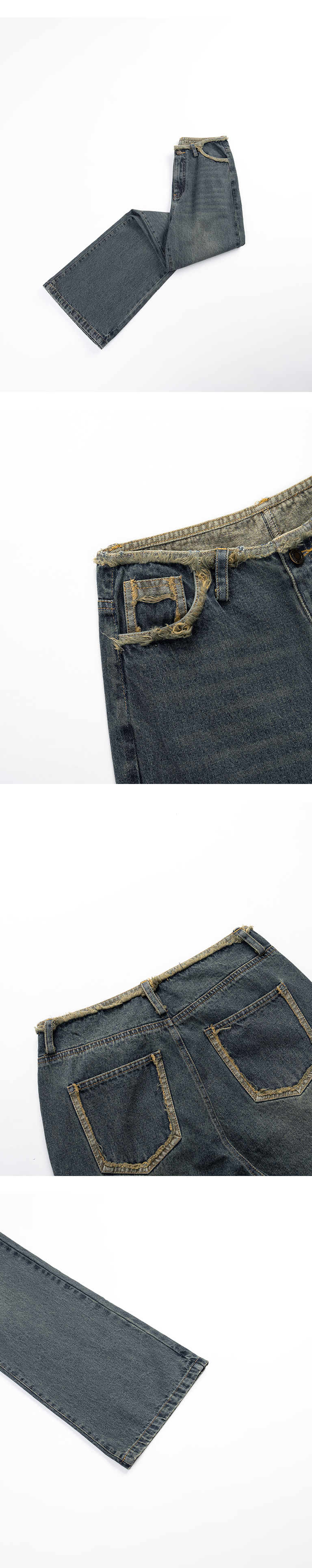 复古刷色抽须造型牛仔裤