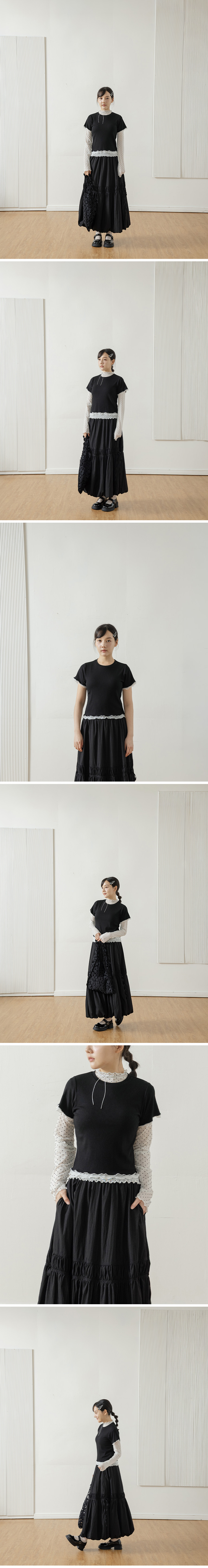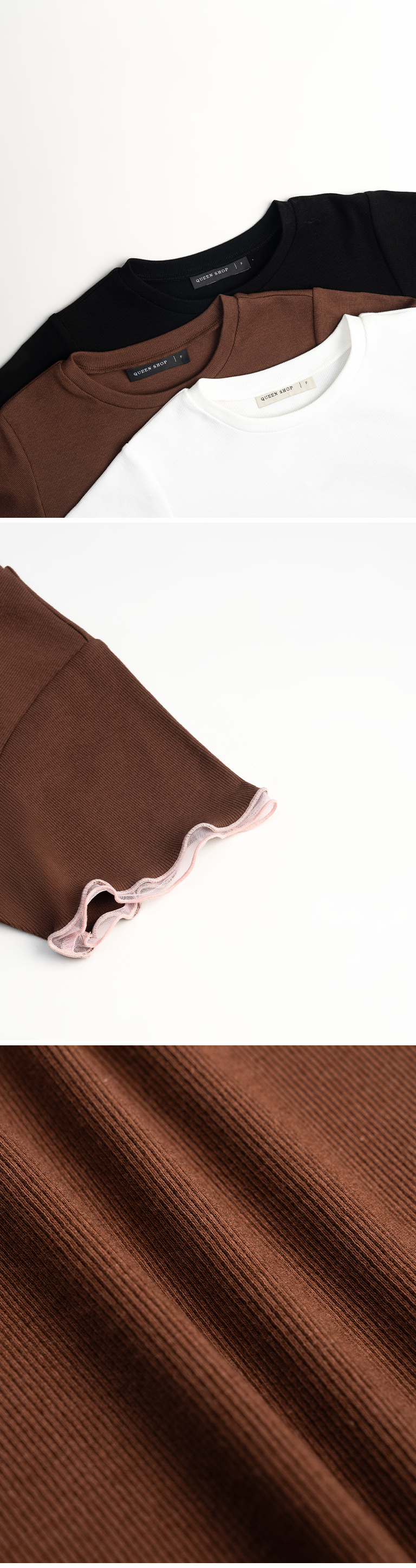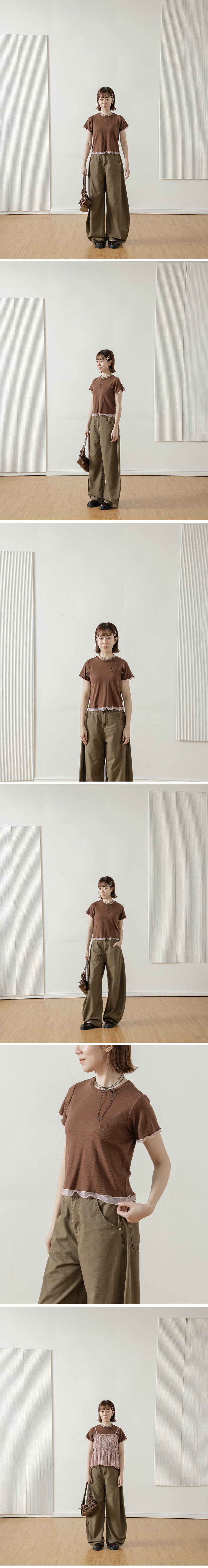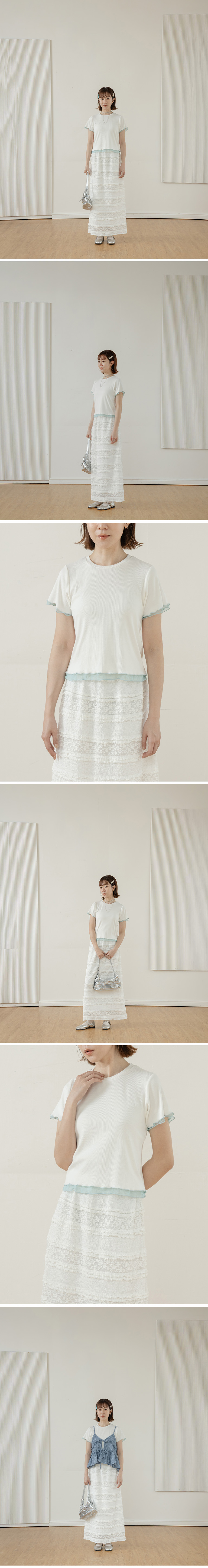 木耳边配色网纱剪接上衣