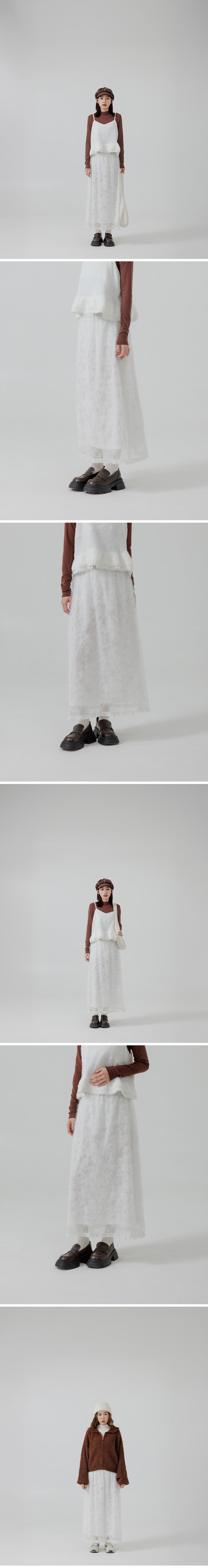立体缇花蕾丝双层造型长裙