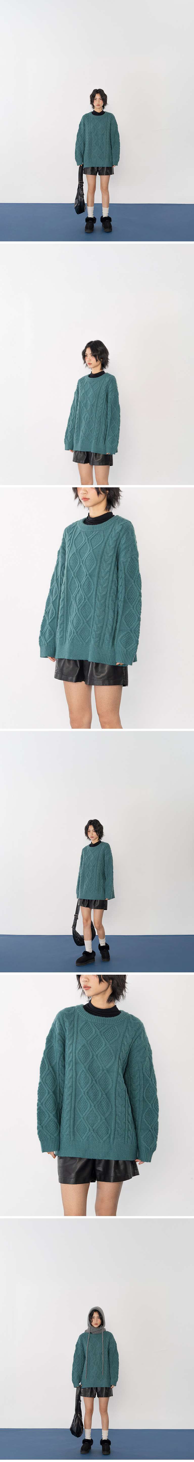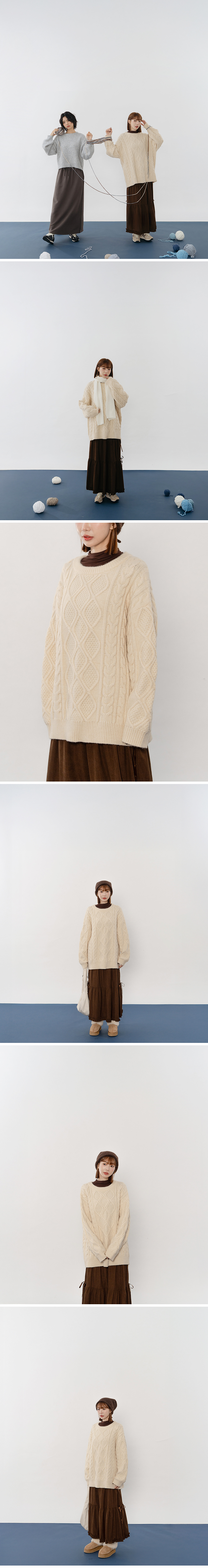 立体麻花造型宽版针织毛衣