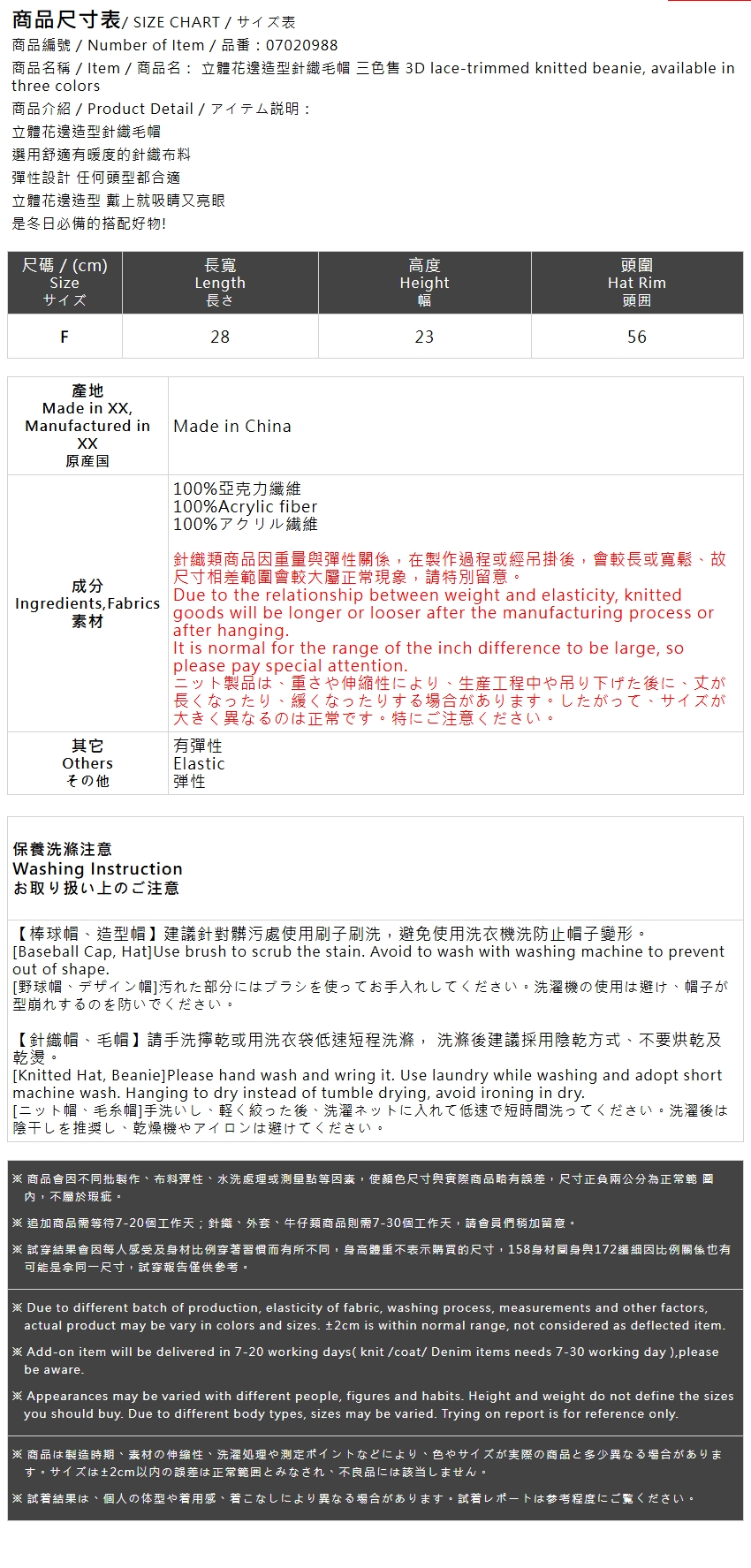 立体花边造型针织毛帽