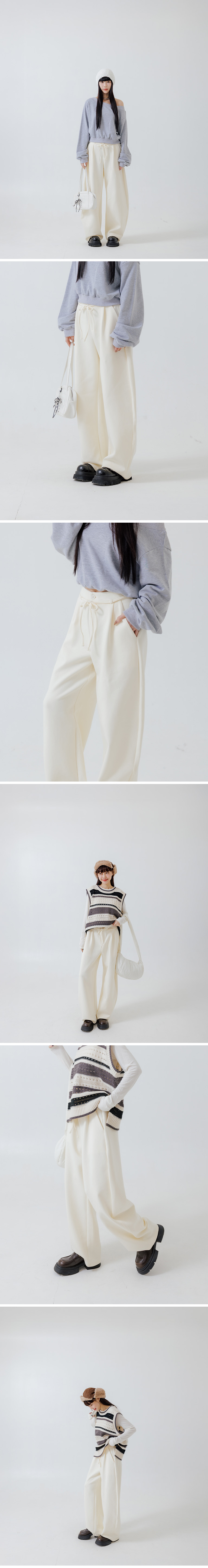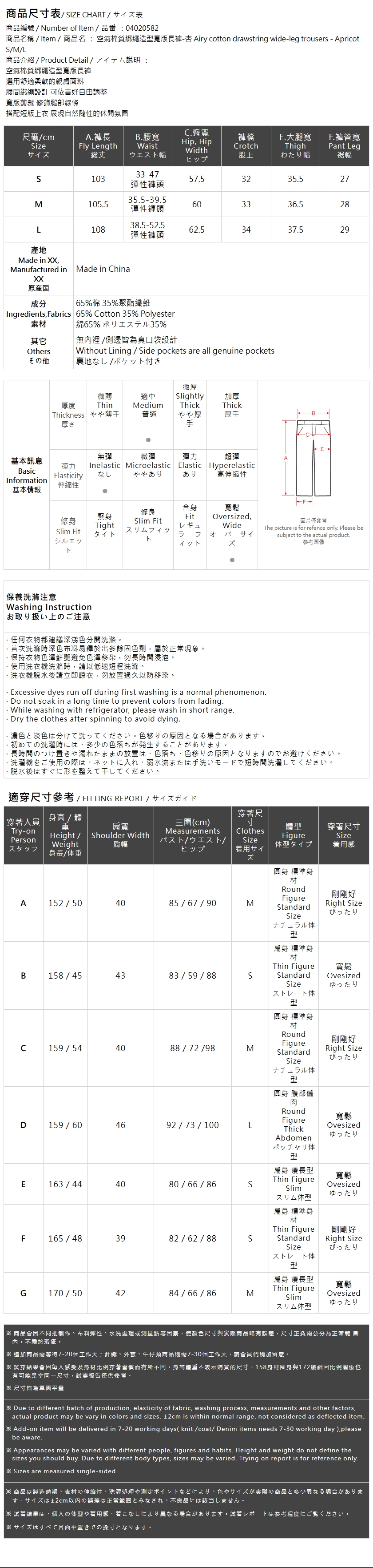 Airy cotton drawstring wide-leg trousers - Apricot S/M/L【04020582】in stock+pre-order