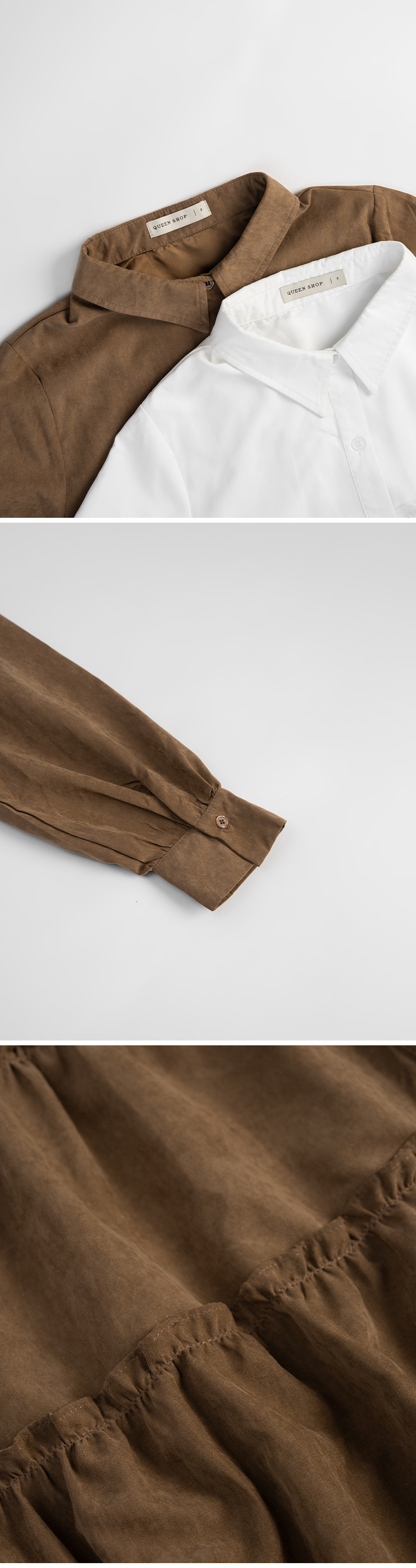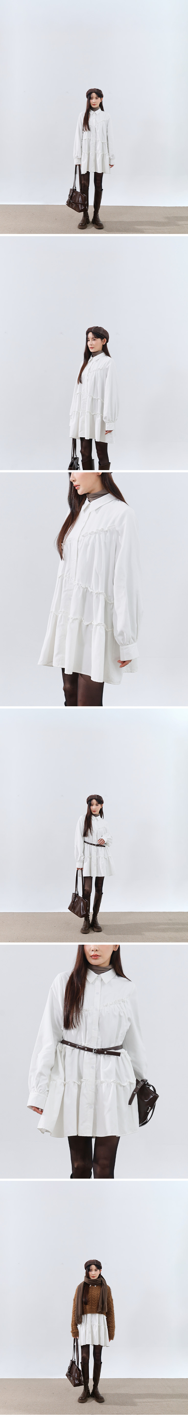 Asymmetrical ruffled shirt dress, available in two colors.【01087165】in stock+pre-order