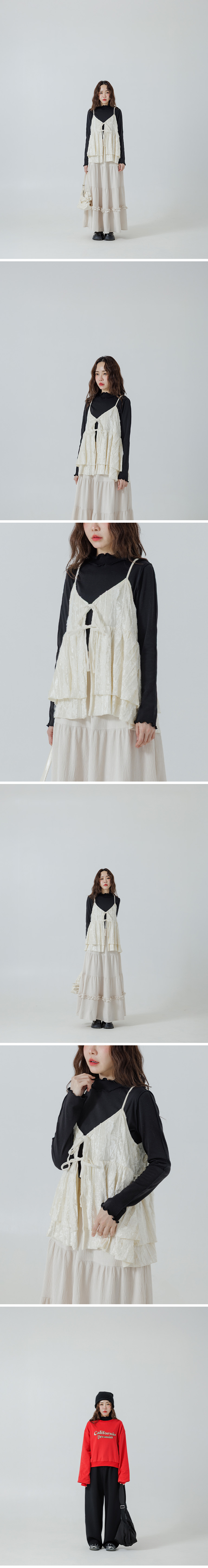 高领搭配木耳边剪接 增添温柔层次