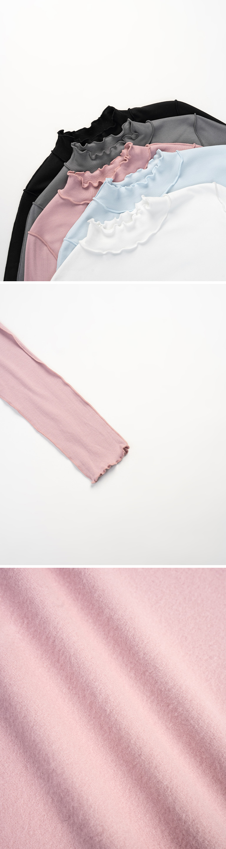 内磨毛木耳边剪接高领上衣
