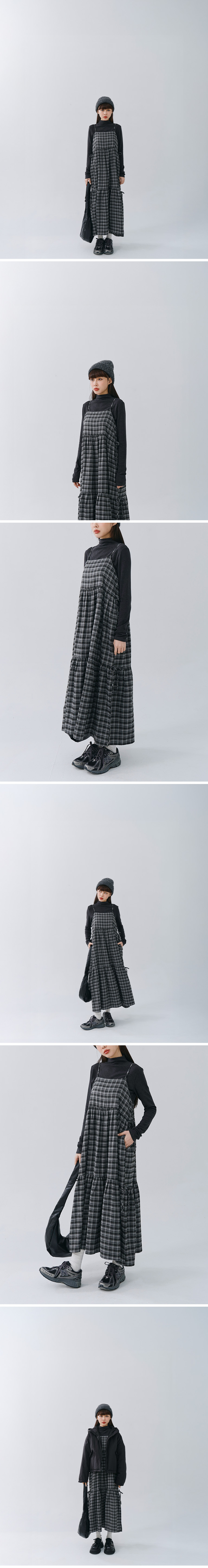 Checkered side-strap spaghetti strap maxi dress, available in two colors.【01087182】in stock+pre-order