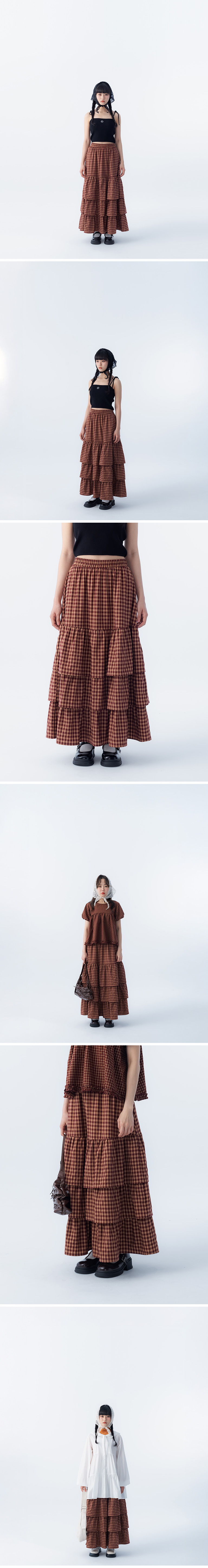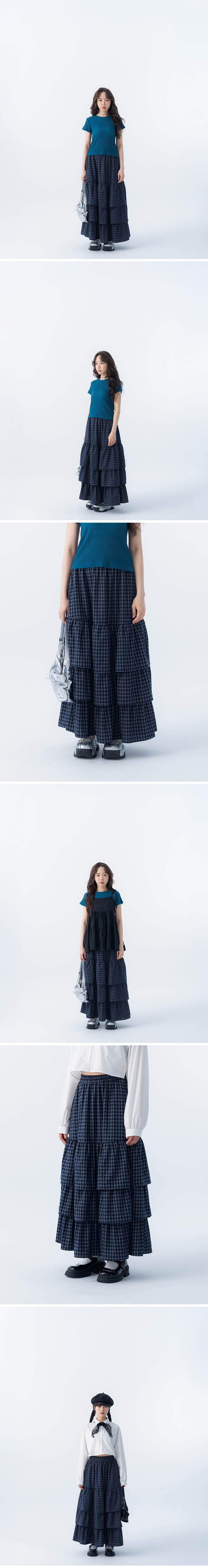 配色格纹设计荷叶蛋糕裙