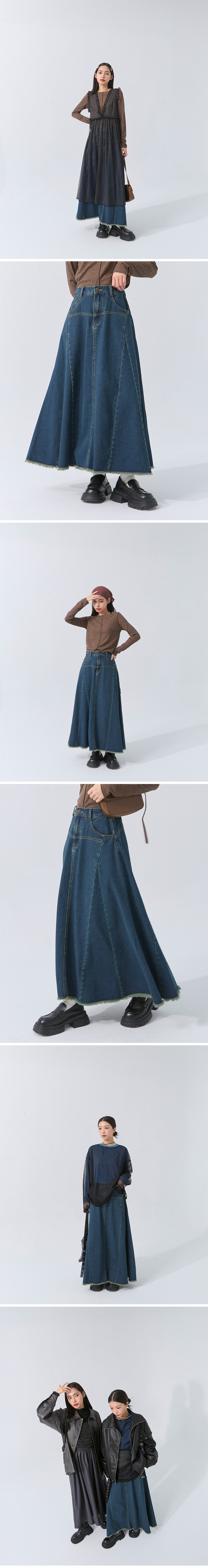 Denim maxi skirt with gusseted hem S/M/L【03021665】in stock+pre-order