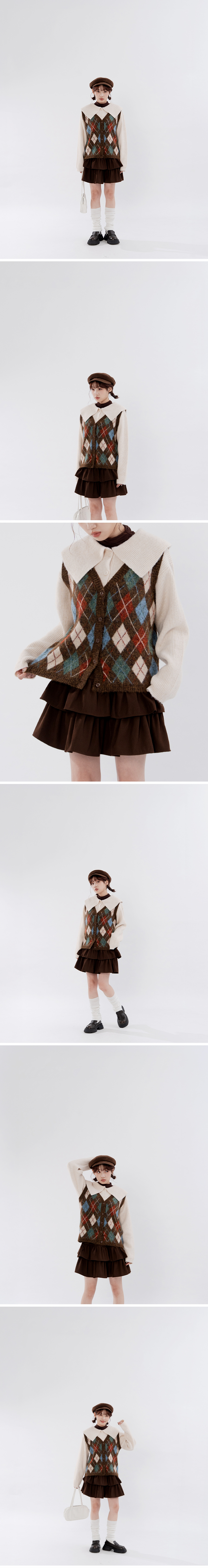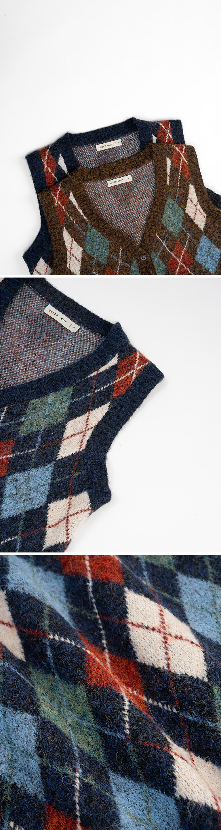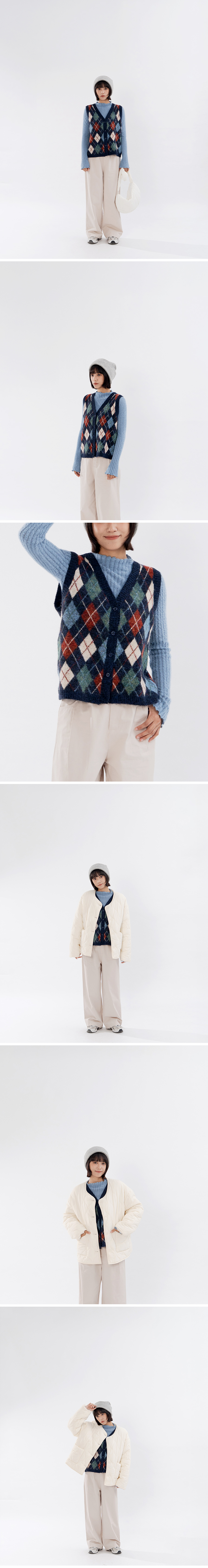 配色菱格纹V领针织背心
