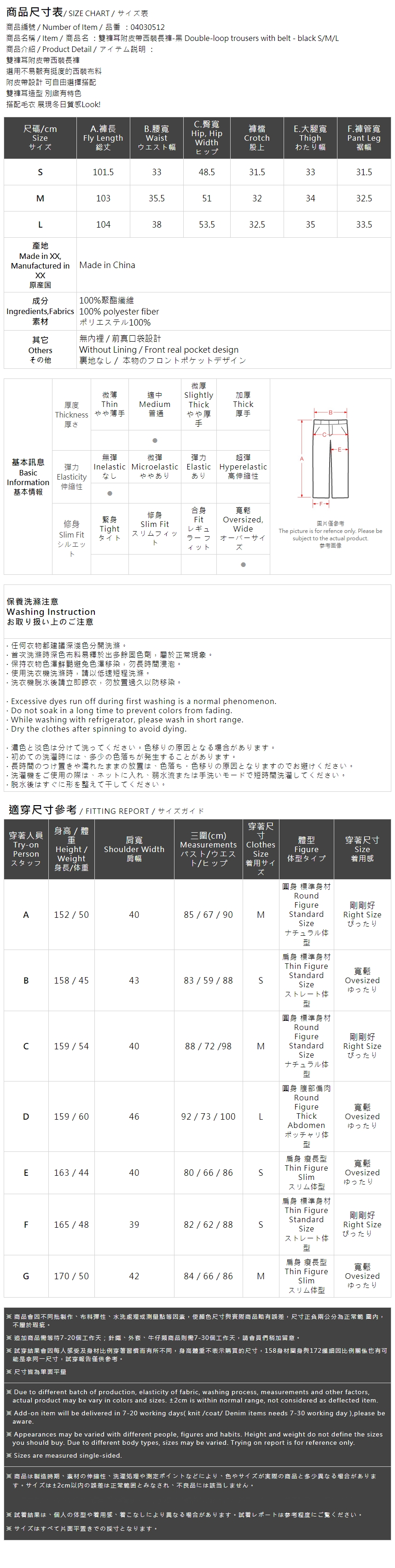 Double-loop trousers with belt - black S/M/L【04030512】in stock+pre-order