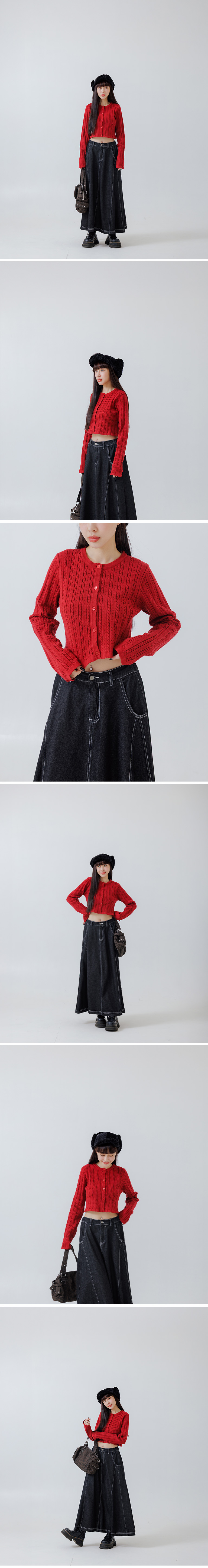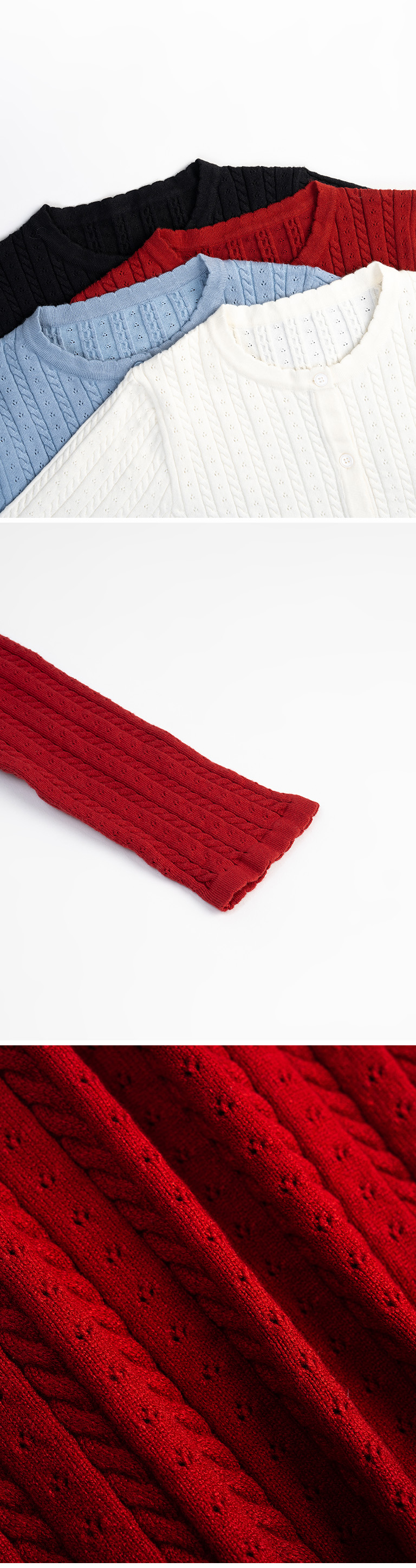 镂空缇花织纹设计排扣针织上衣