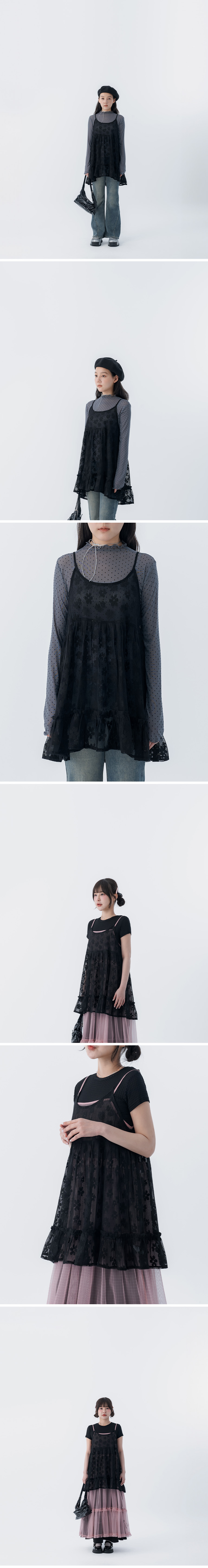 镂空缇花荷叶下摆细肩罩衫背心