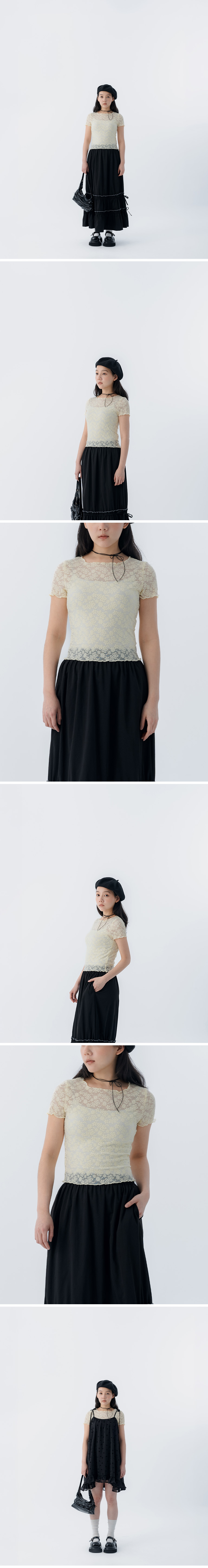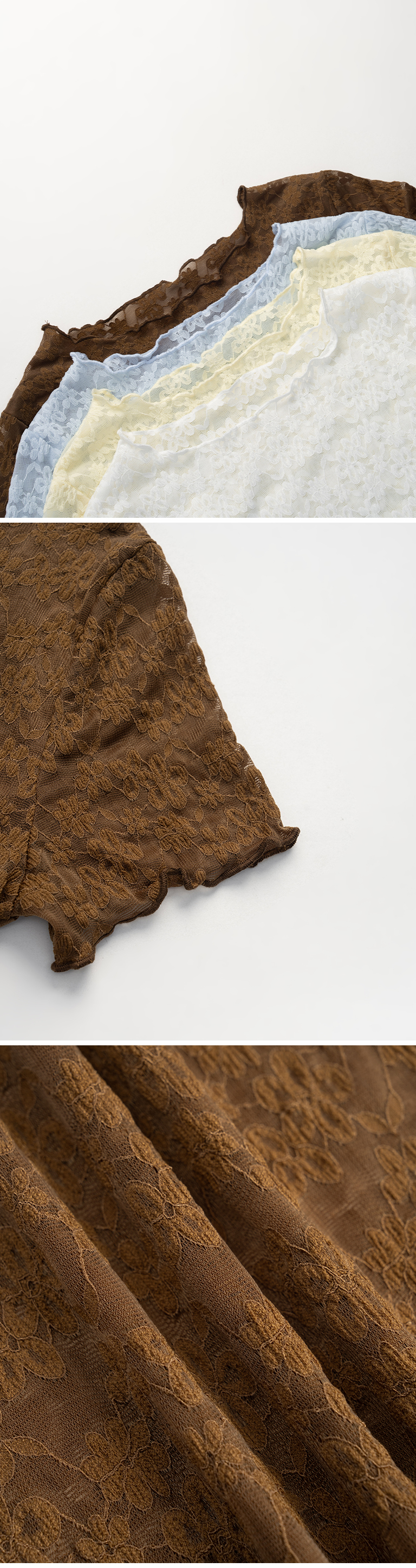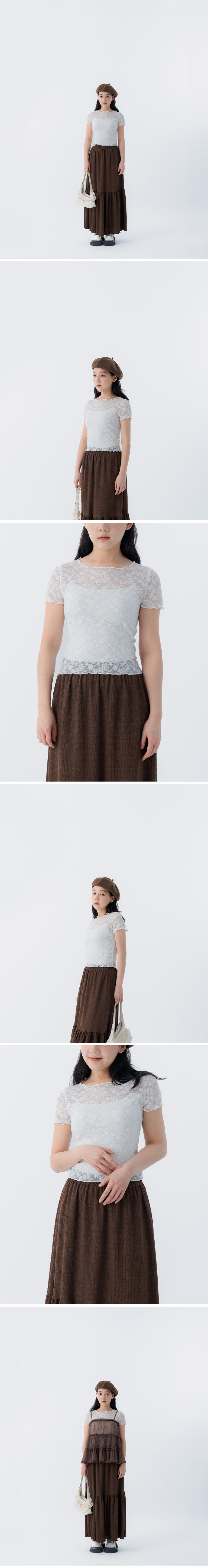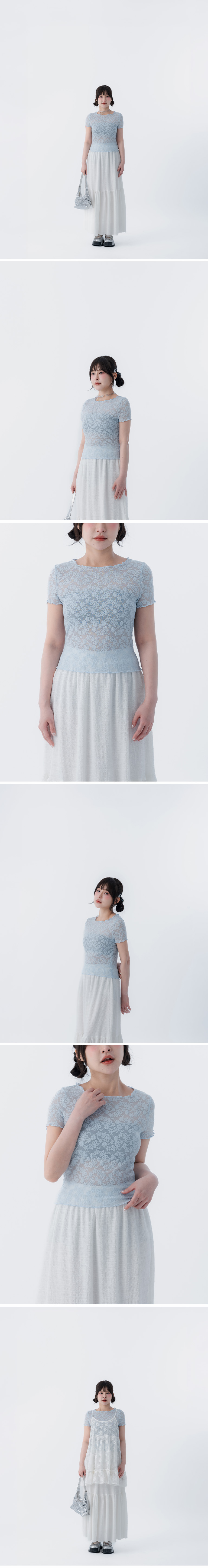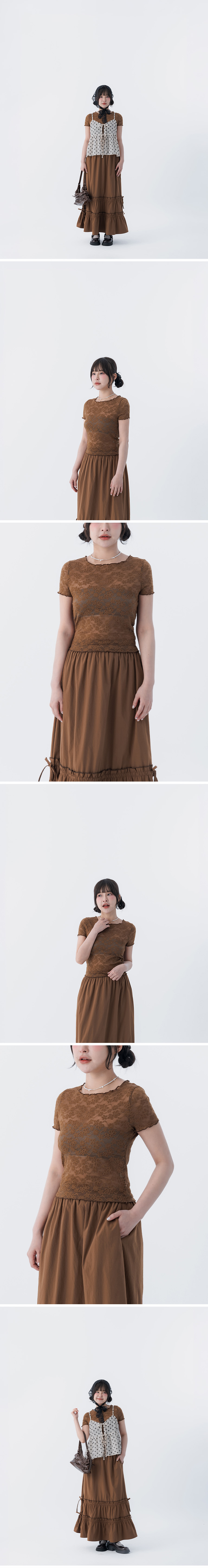 缇花造型木耳边透肤短袖上衣