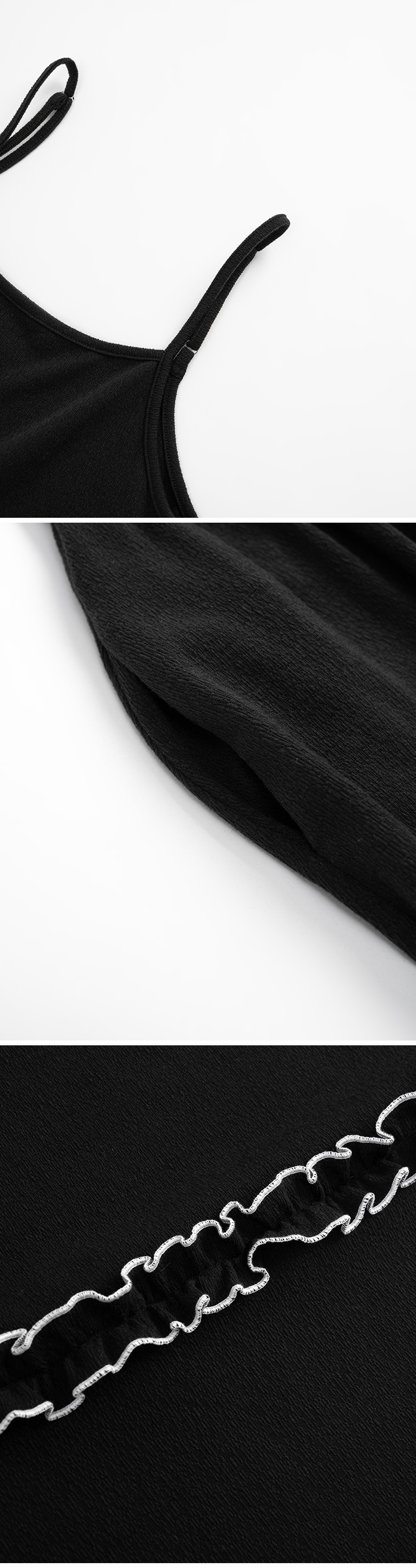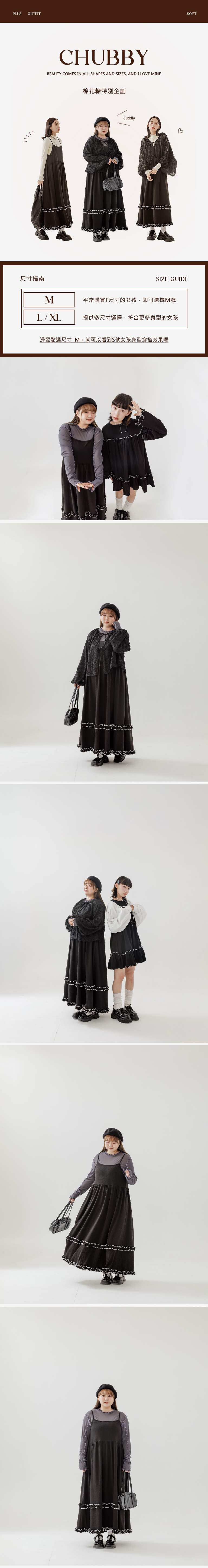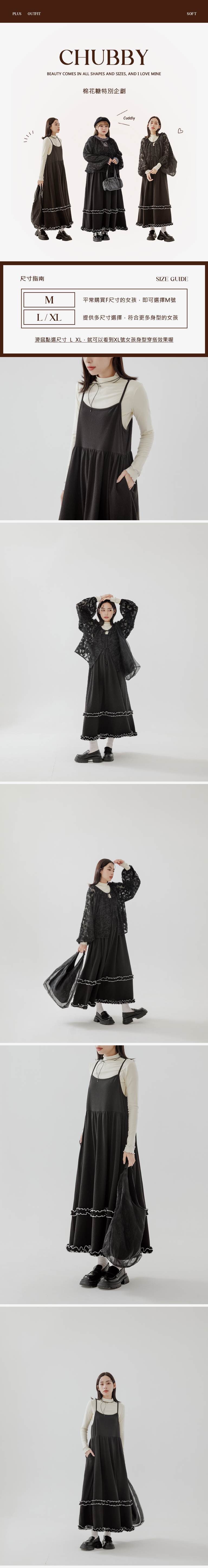 棉花糖 撞色木耳边伞襬细肩长洋装