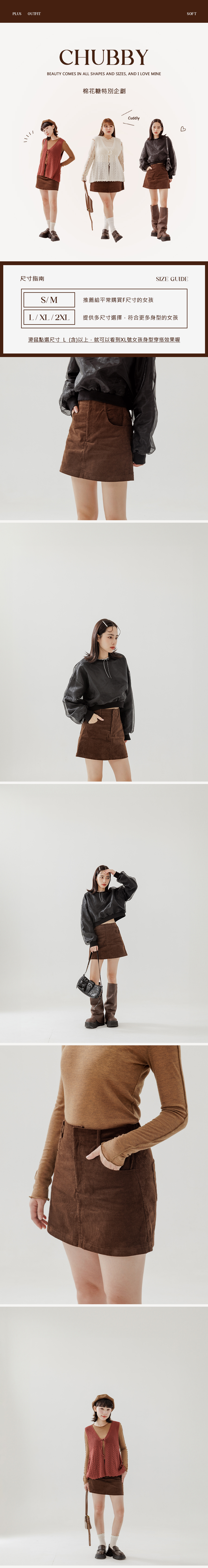 棉花糖 灯心绒直纹纹理短裙
