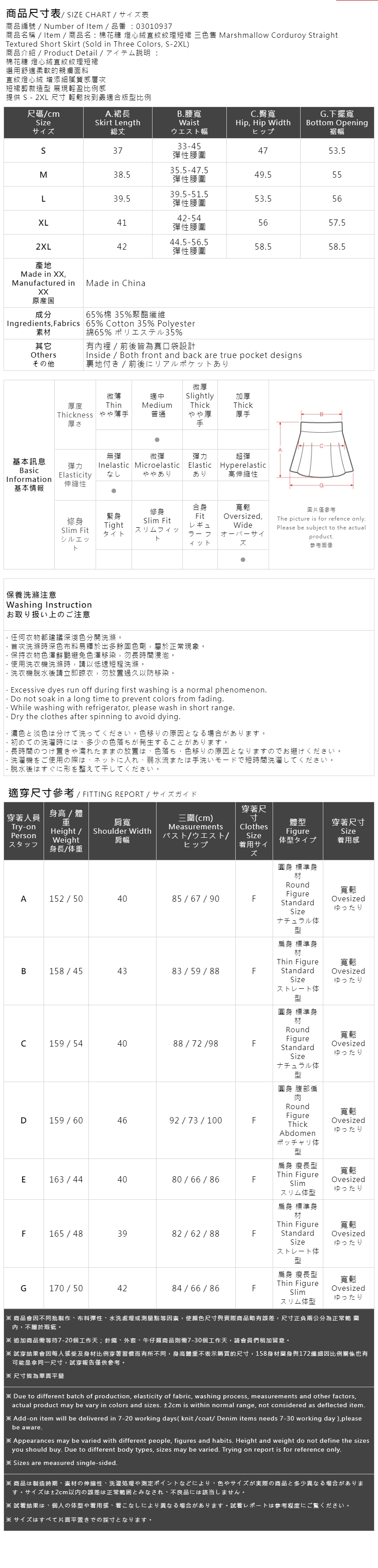 提供 S-2XL 尺寸 轻松找到最适合版型比例