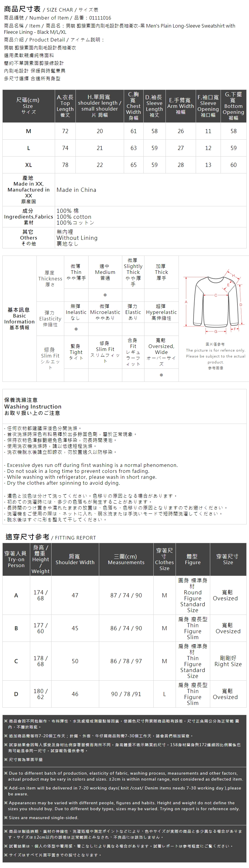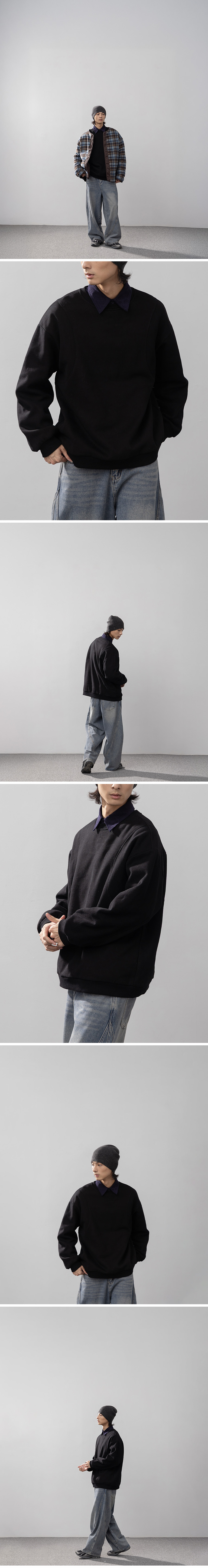 男装 剪接素面内刷毛设计长袖卫衣
