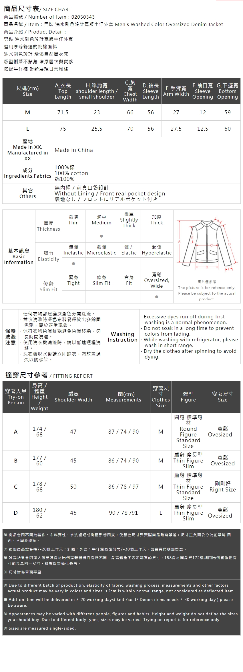 男装 洗水刷色设计宽版牛仔外套