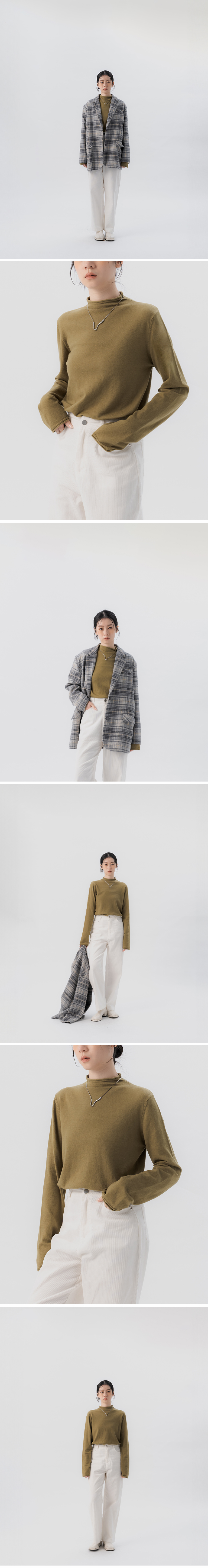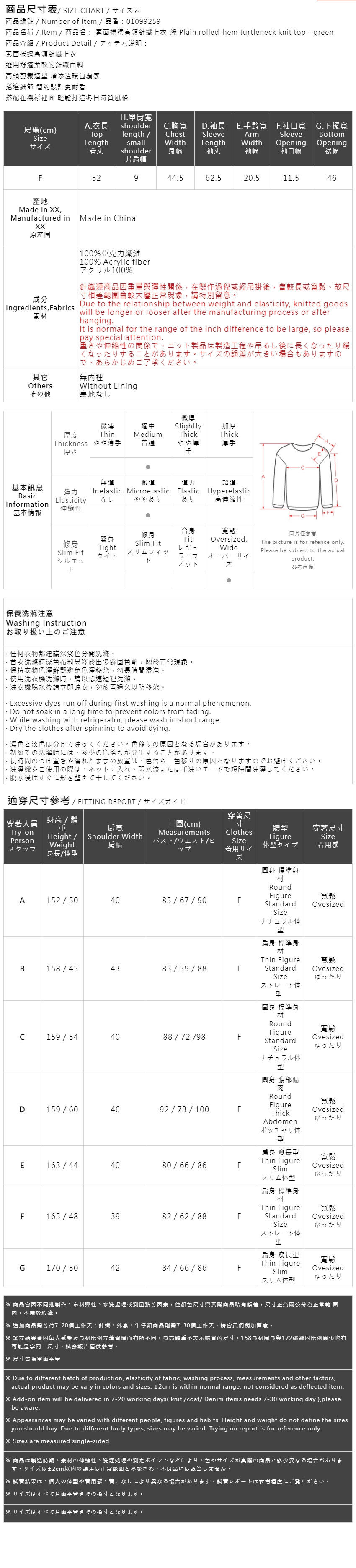 Plain rolled-hem turtleneck knit top - green【01099259】in stock+pre-order