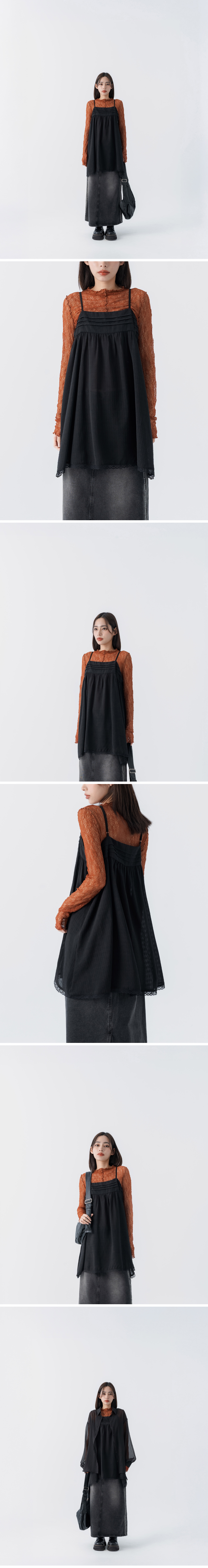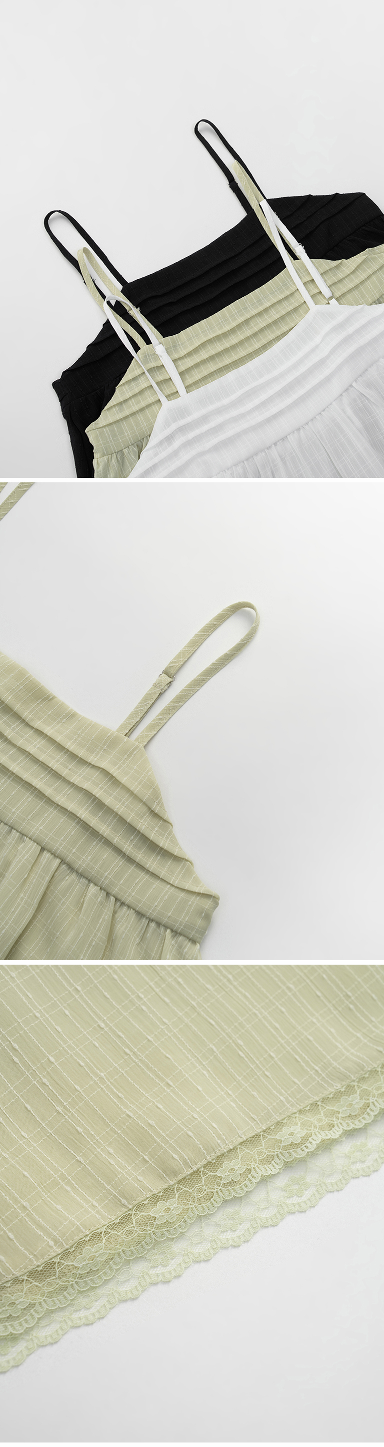 打褶下摆蕾丝设计细肩罩衫背心