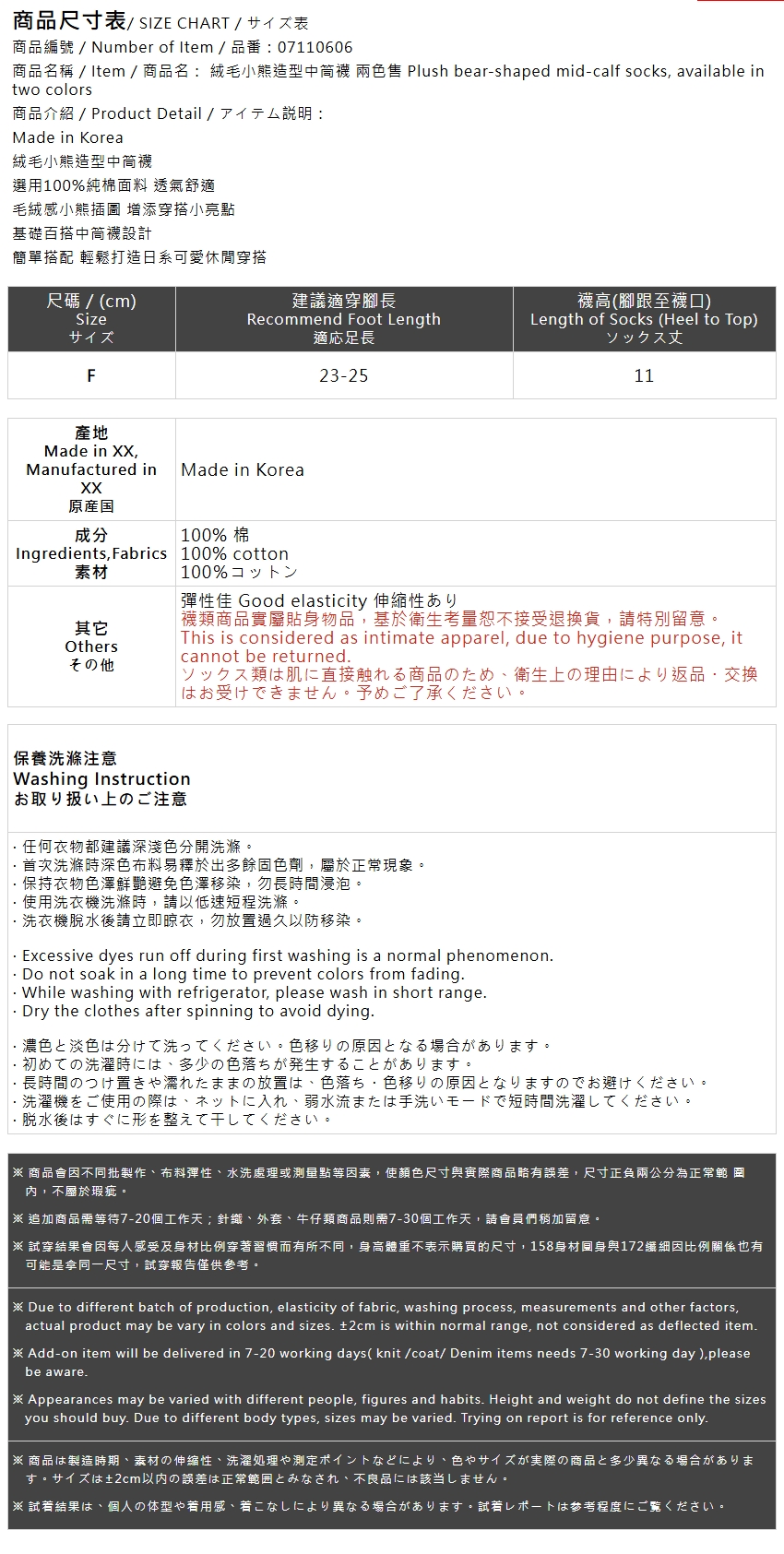 绒毛小熊造型中筒袜