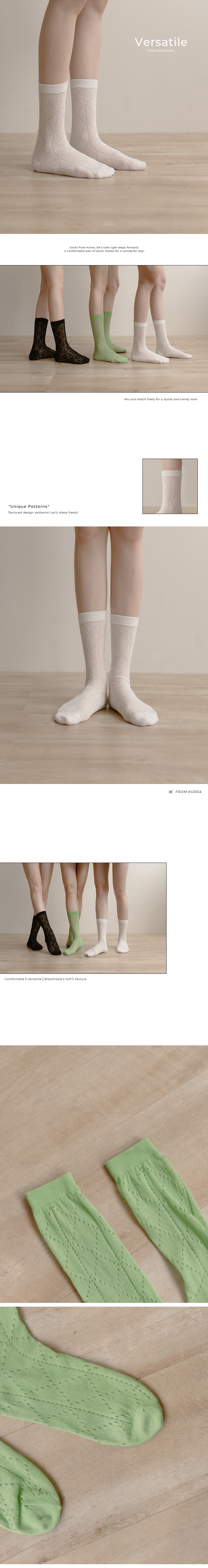 Hollowed out lattice shape mid-calf socks