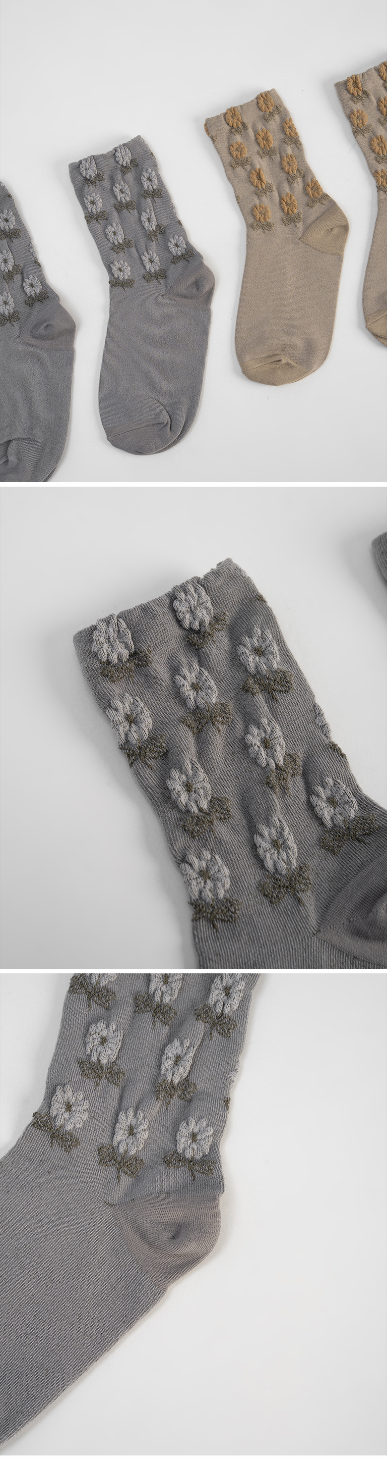 复古立体小花造型中筒袜