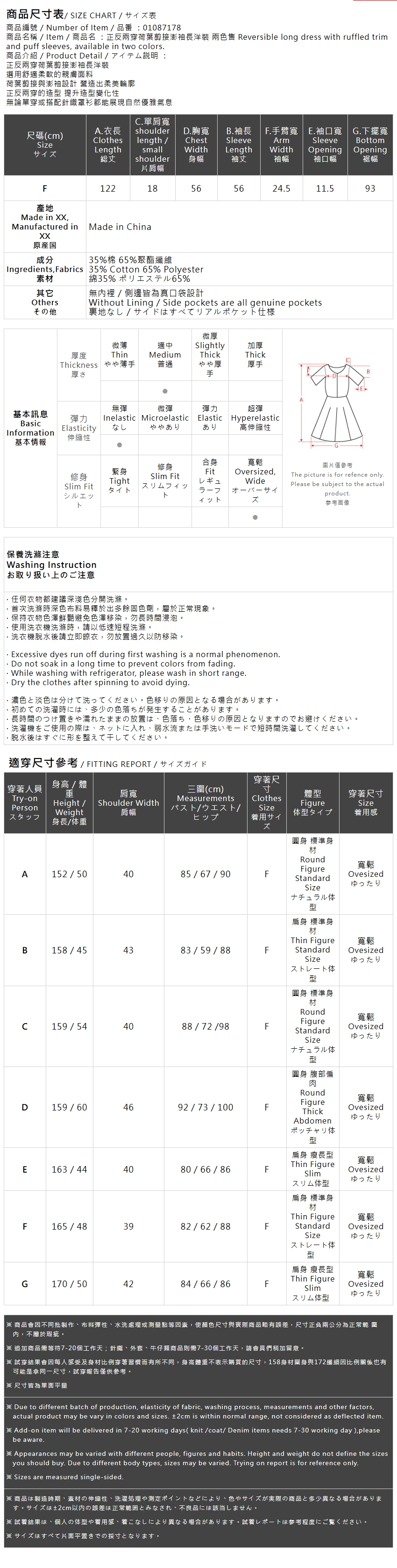 正反两穿荷叶剪接澎袖长洋装