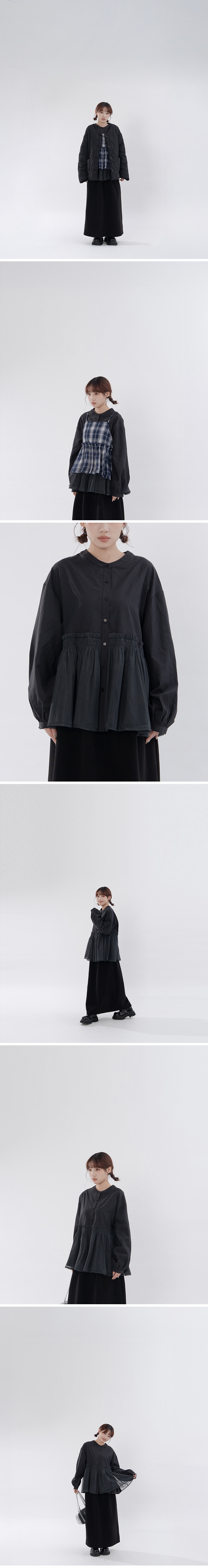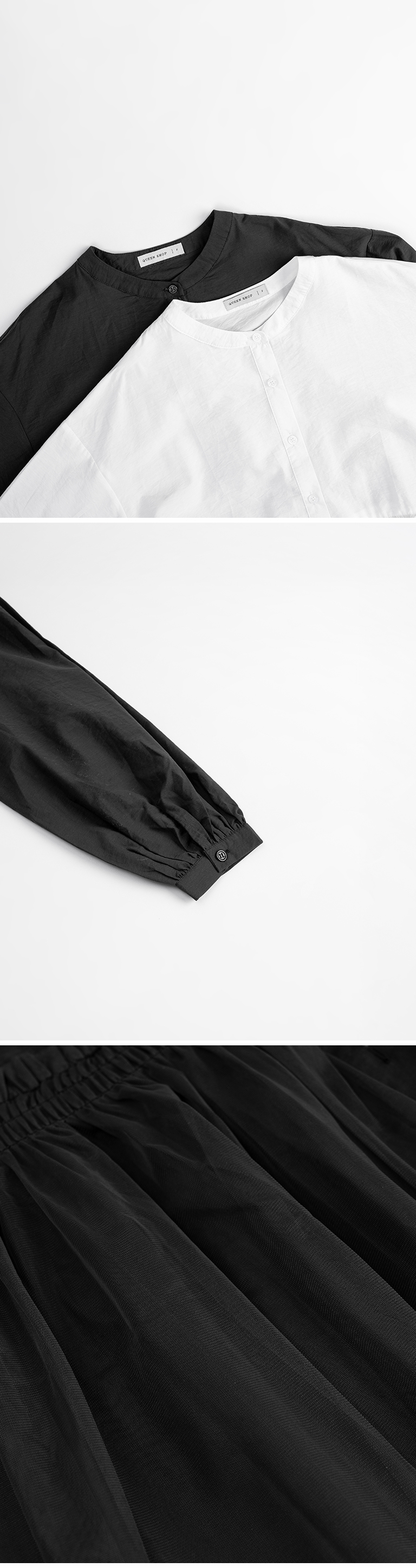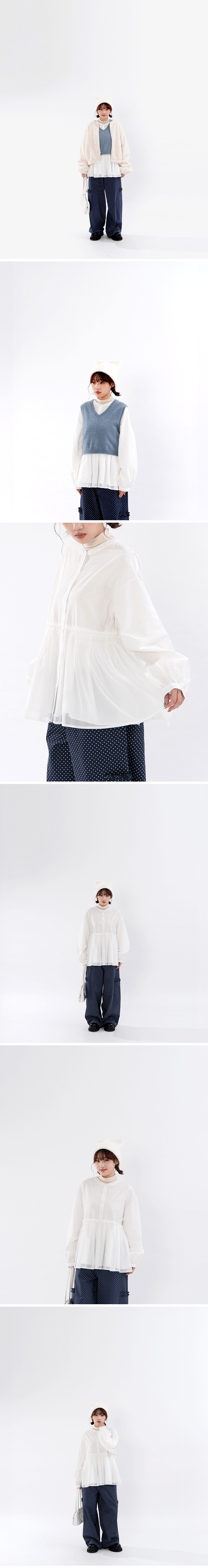 荷叶透纱剪接设计中山领衬衫