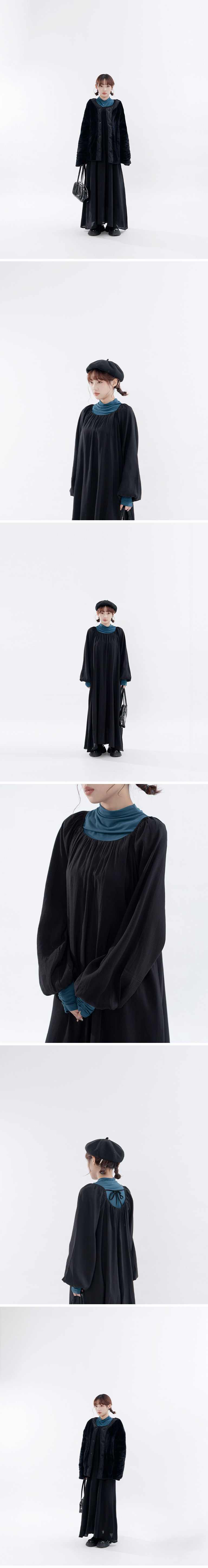 澎袖方圆领设计 修饰手臂与肩颈脸部线条