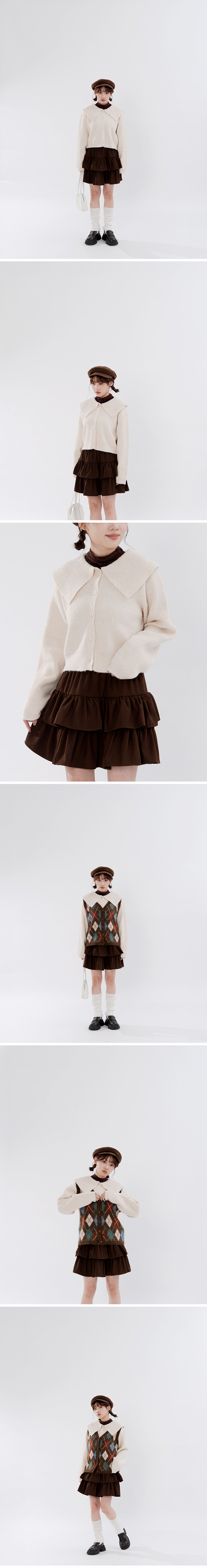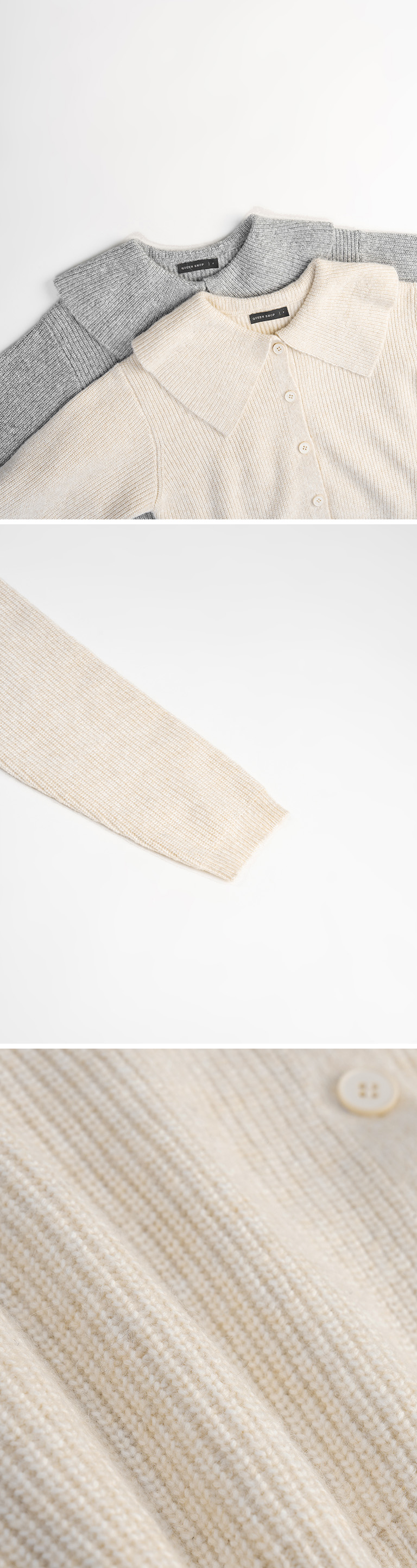 大领片排扣设计短版针织毛衣
