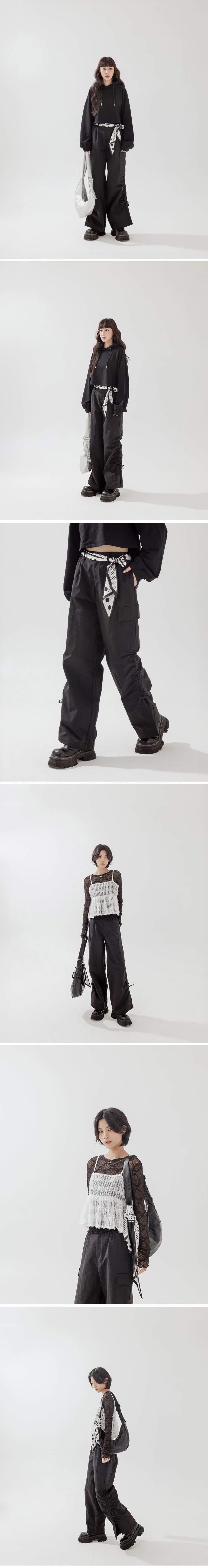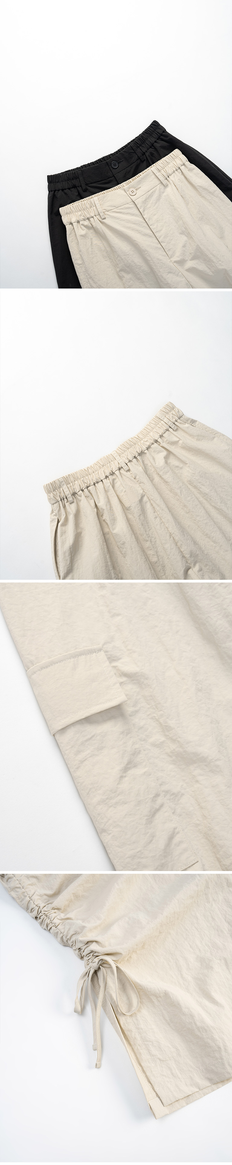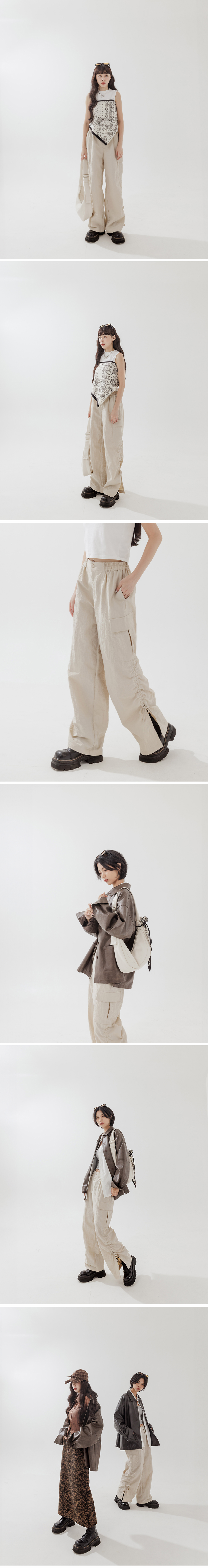 侧抽皱绑带设计大口袋工装长裤