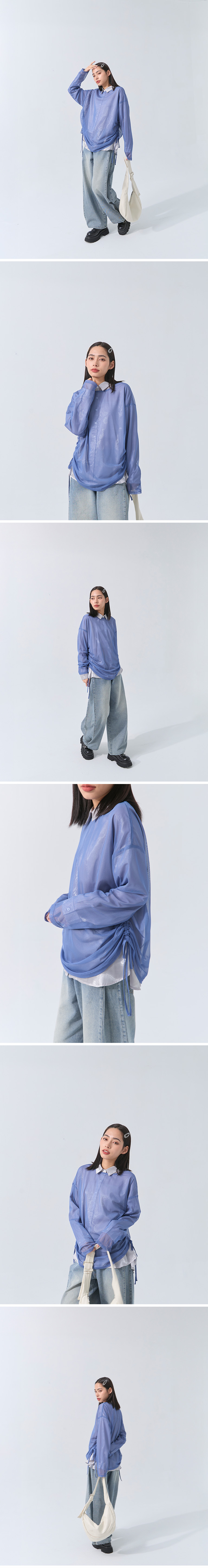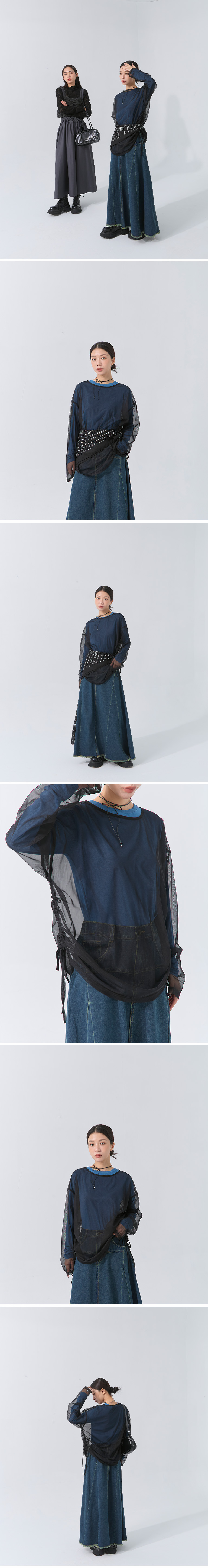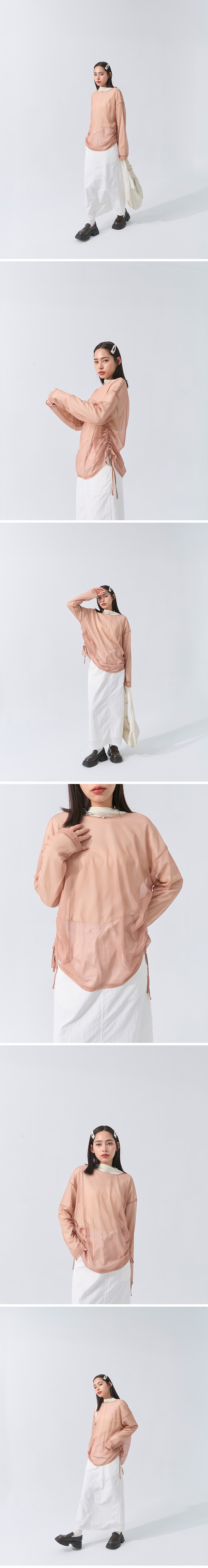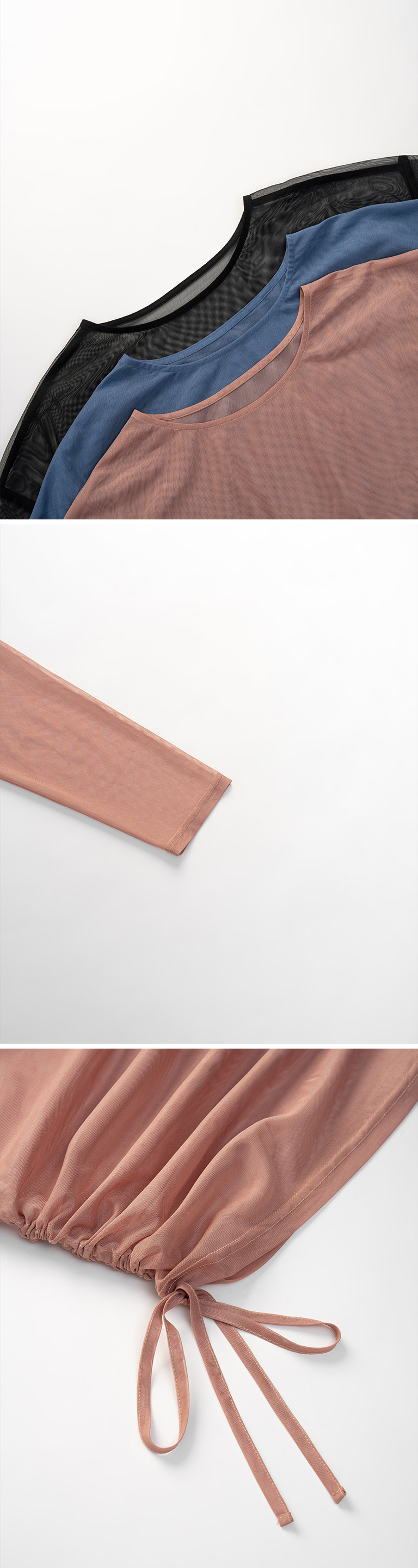 Side ruched mesh sheer cover-up top in three colors【01099124】in stock+pre-order