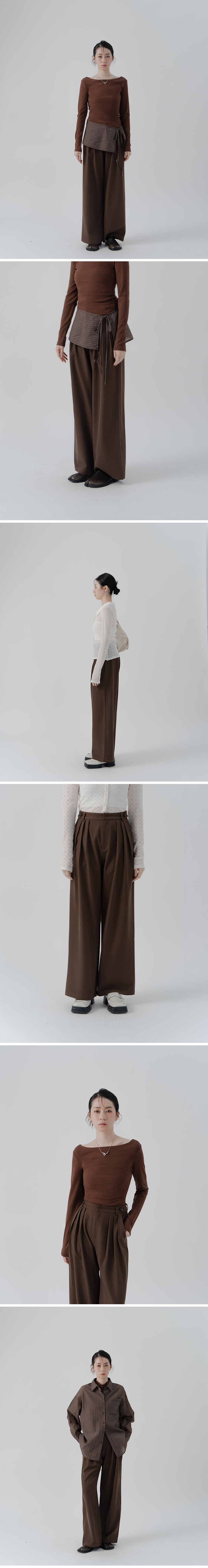 侧腰扣带装饰打褶西装长裤-咖啡 S/M【04030509】现+预