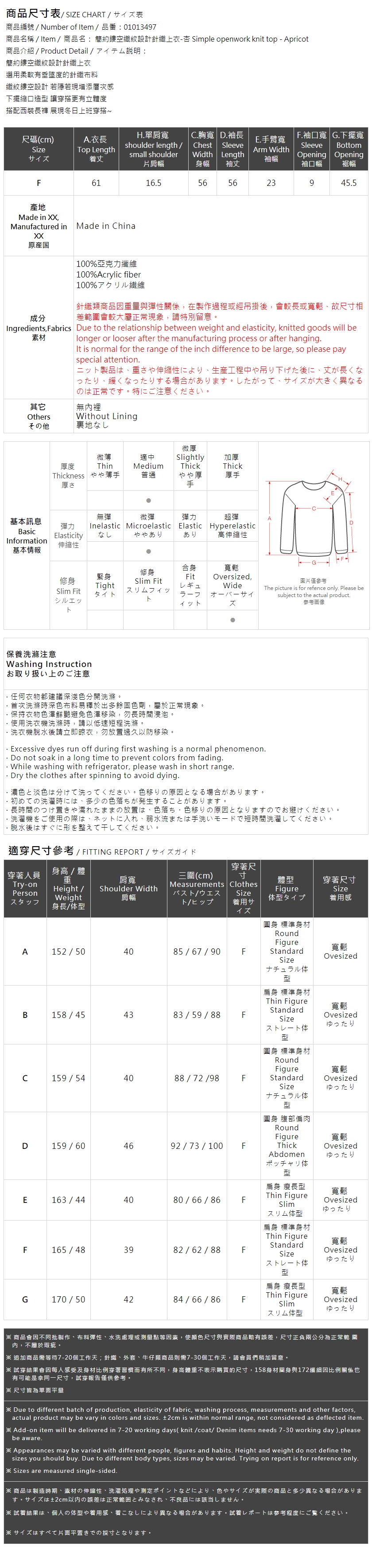 Simple openwork knit top - Apricot【01013497】in stock+pre-order