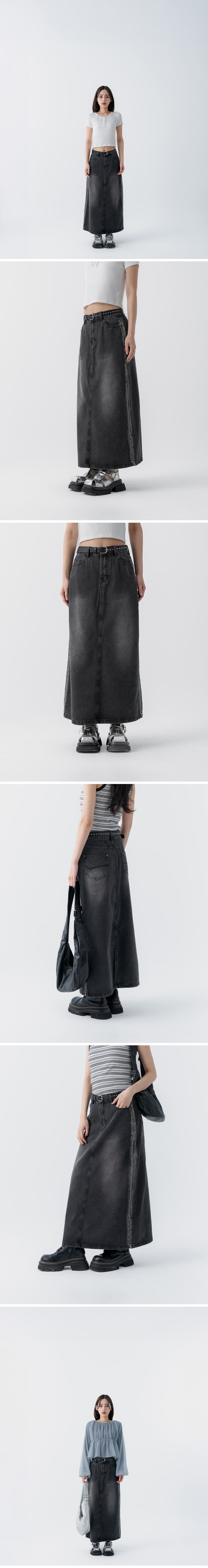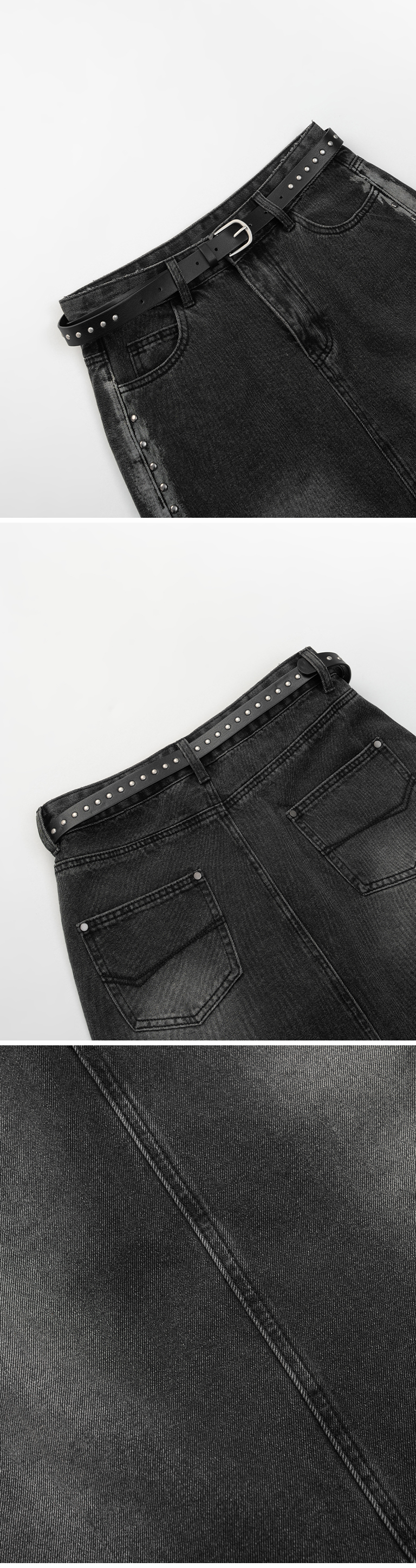 铆钉造型附皮带牛仔长裙