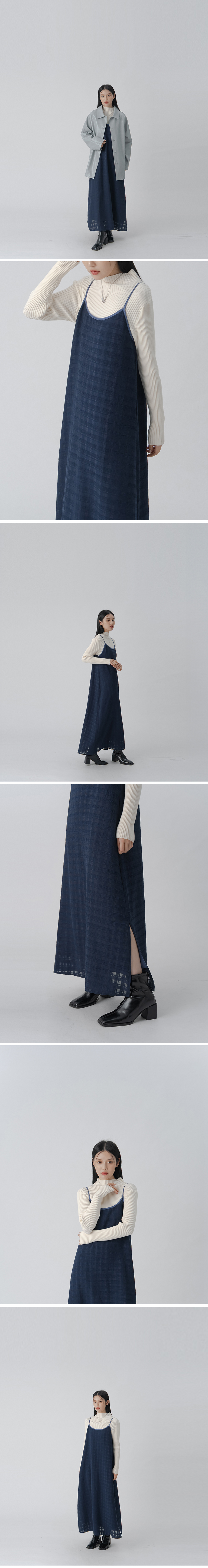 Textured double-layered plaid sheer spaghetti strap long dress - blue【01087236】in stock+pre-order