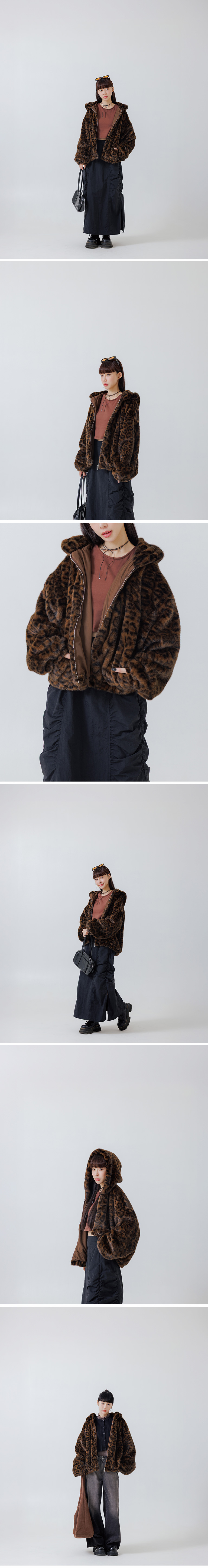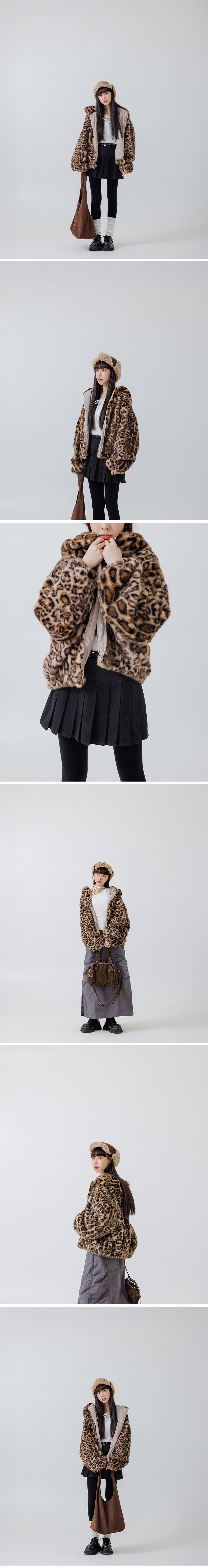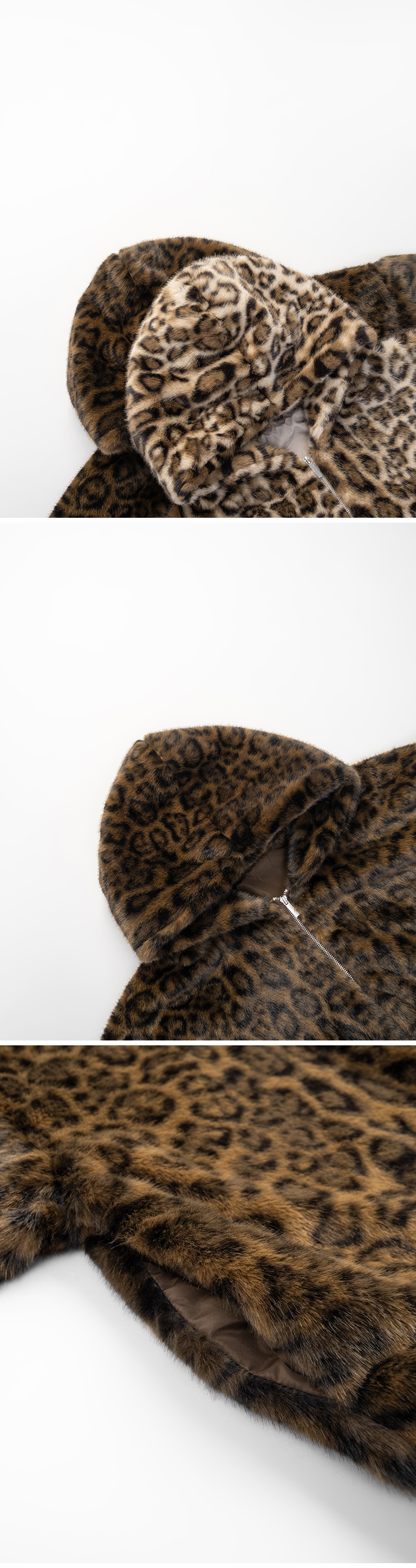 质感豹纹绒毛保暖连帽外套