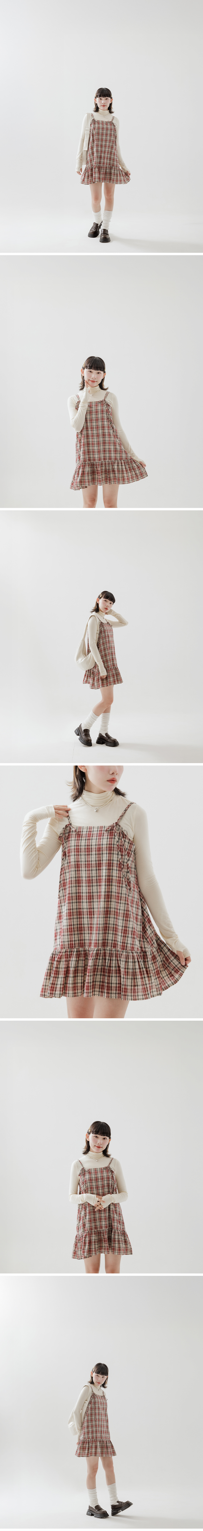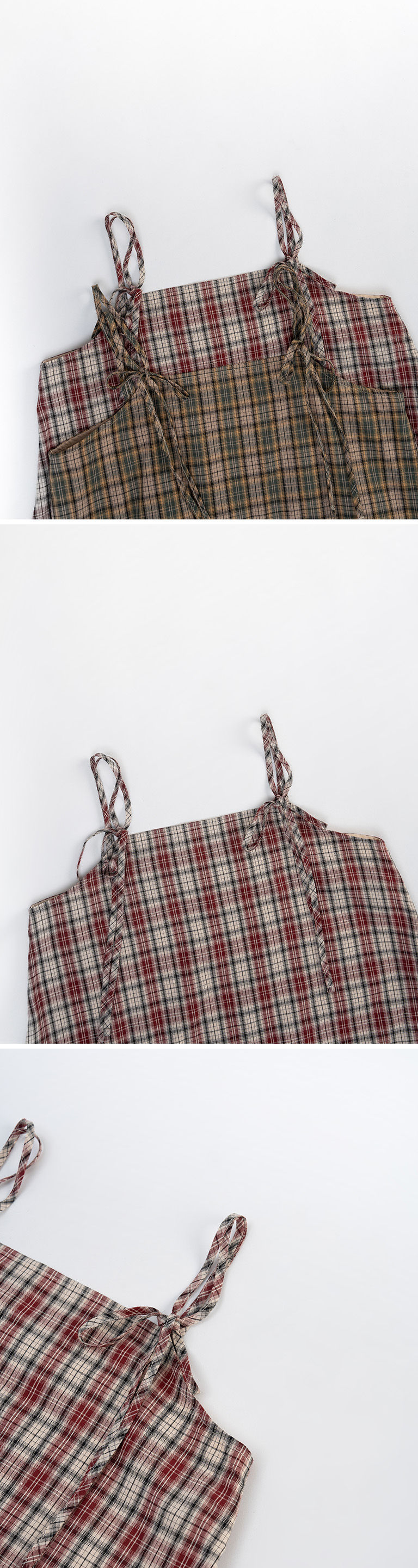 Textured Plaid Bow Double Strap Short Dress - Red【01087211】in stock+pre-order