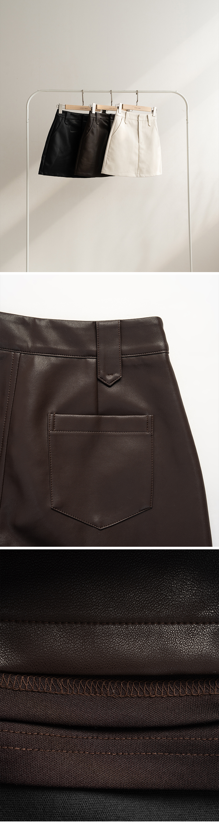 质感素面设计A字皮革短裙