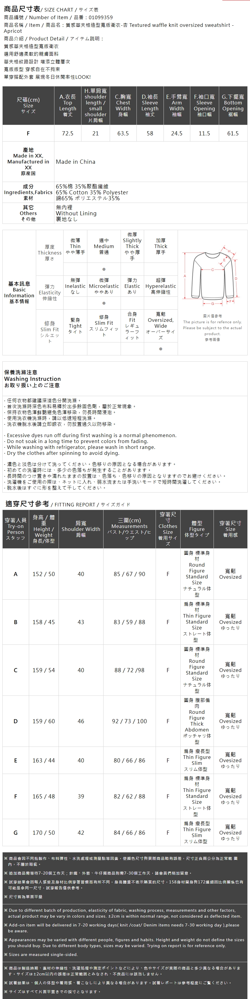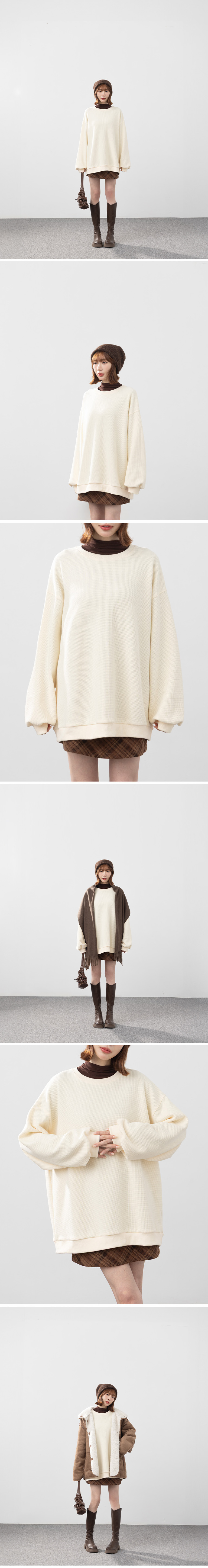 Waffle Casual Wide-Sleeve Sweatshirt - Apricot【01099359】in stock+pre-order
