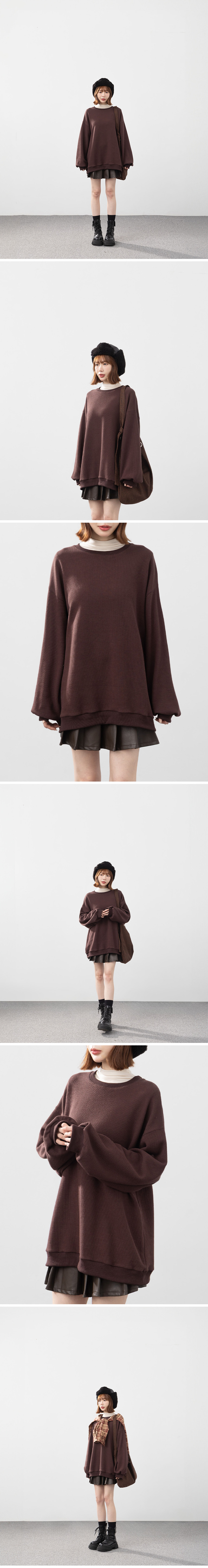 华夫格休闲宽版长袖卫衣