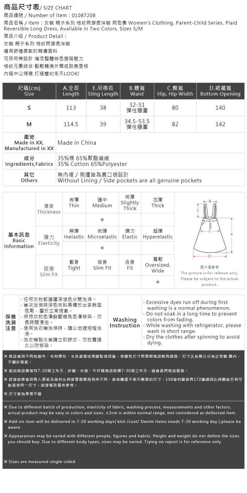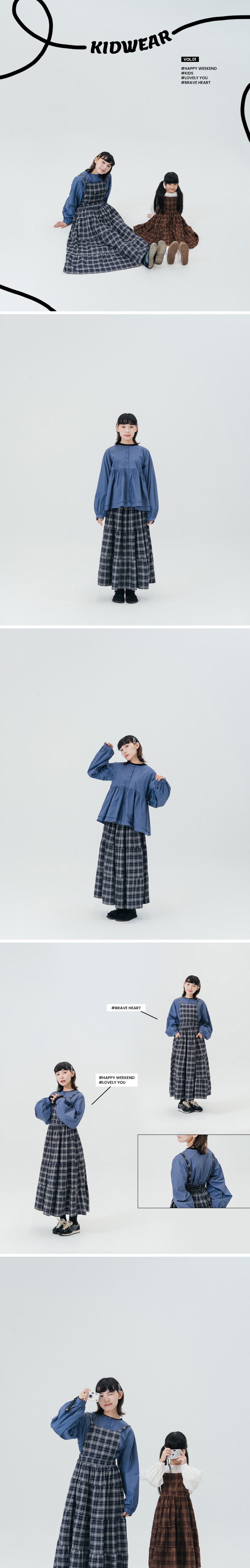 女装 亲子系列 格纹两穿长洋装