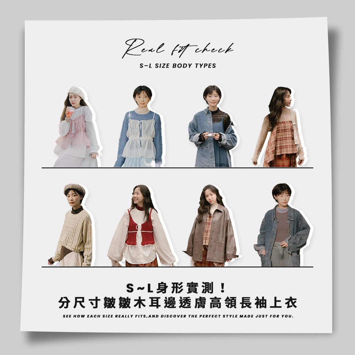 S~L身形实测!分尺寸皱皱木耳边透肤高领长袖上衣