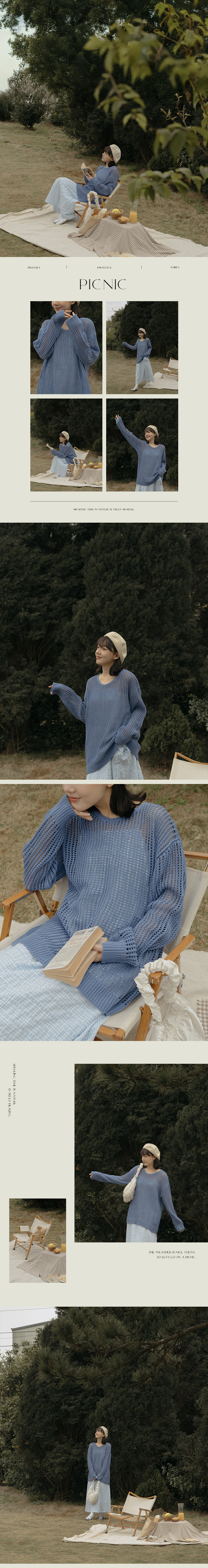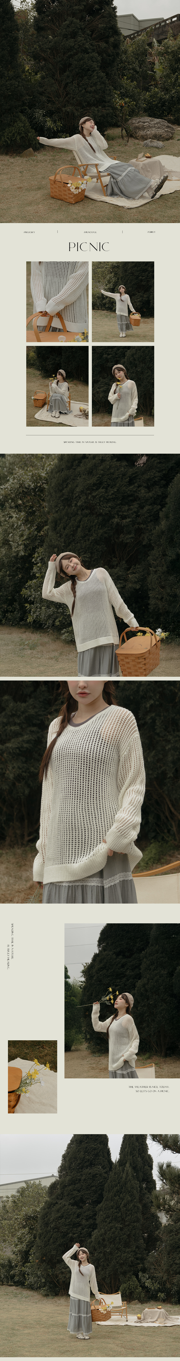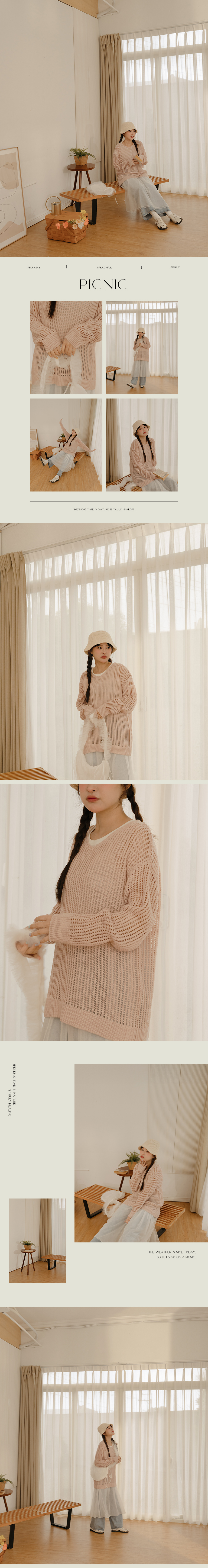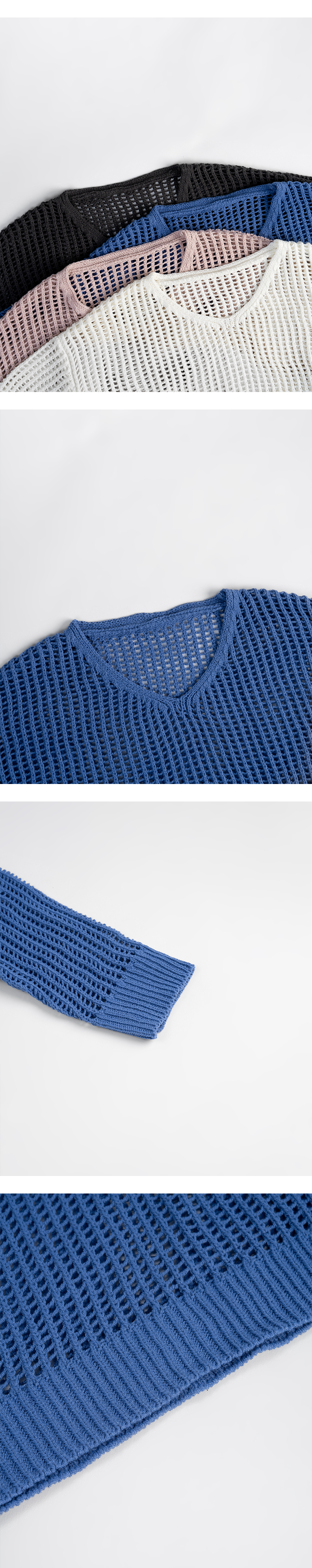 V领洞洞镂空针织宽版上衣