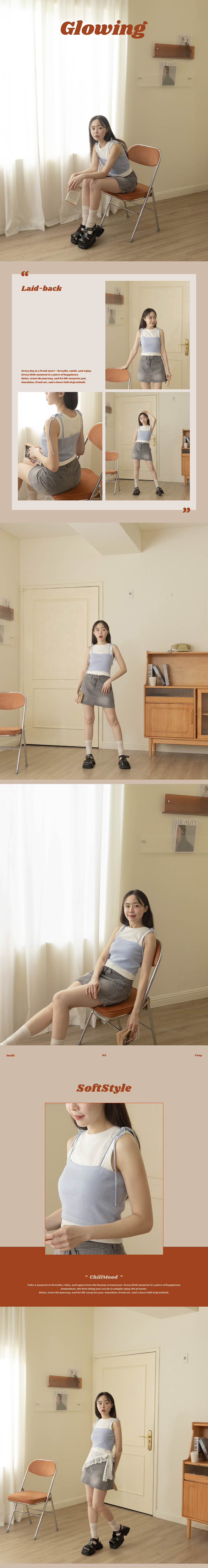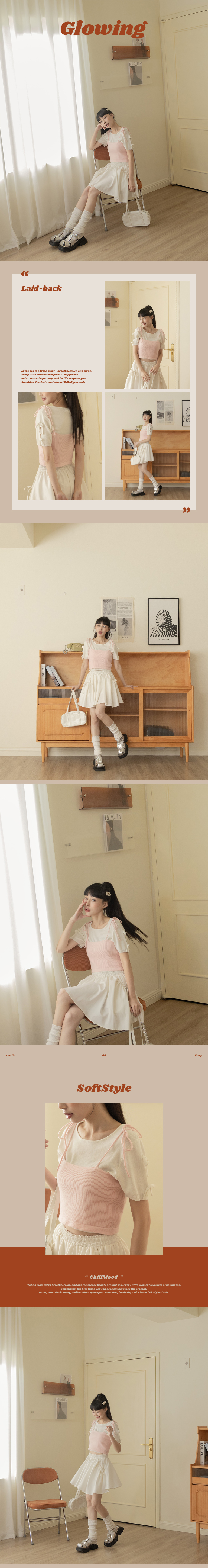 针织坑条肩绑带罩衫背心