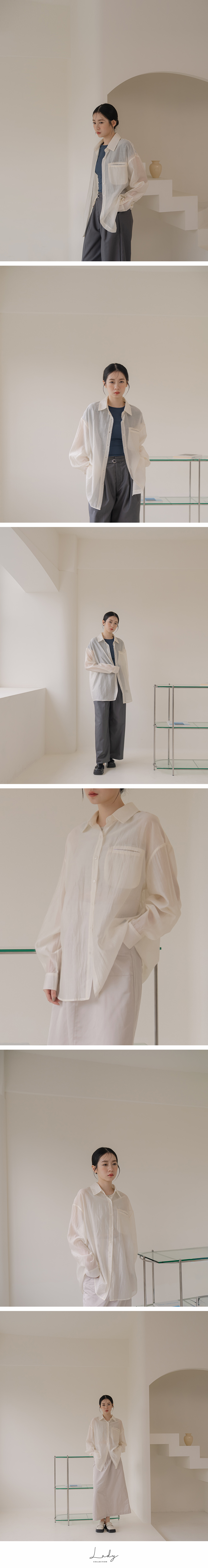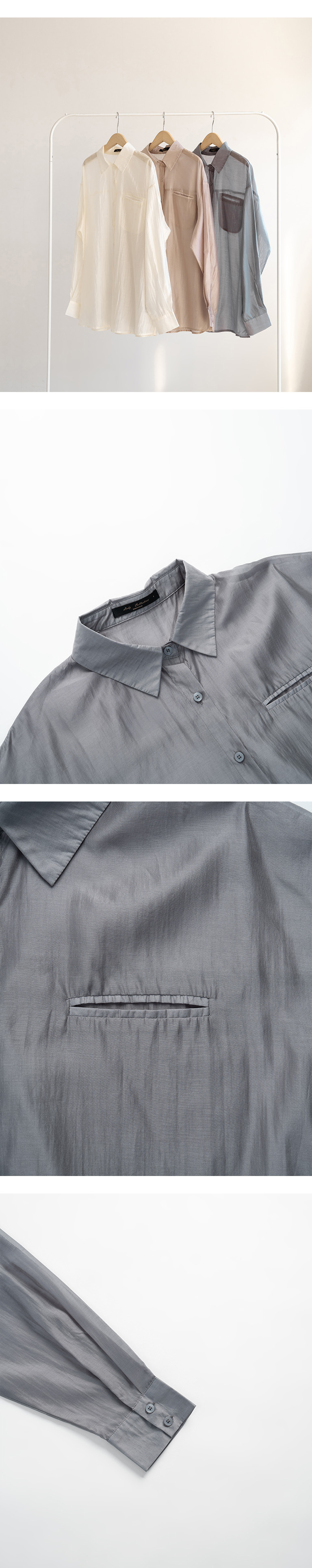 质感光泽单口袋透肤衬衫-杏【01025520】现+预